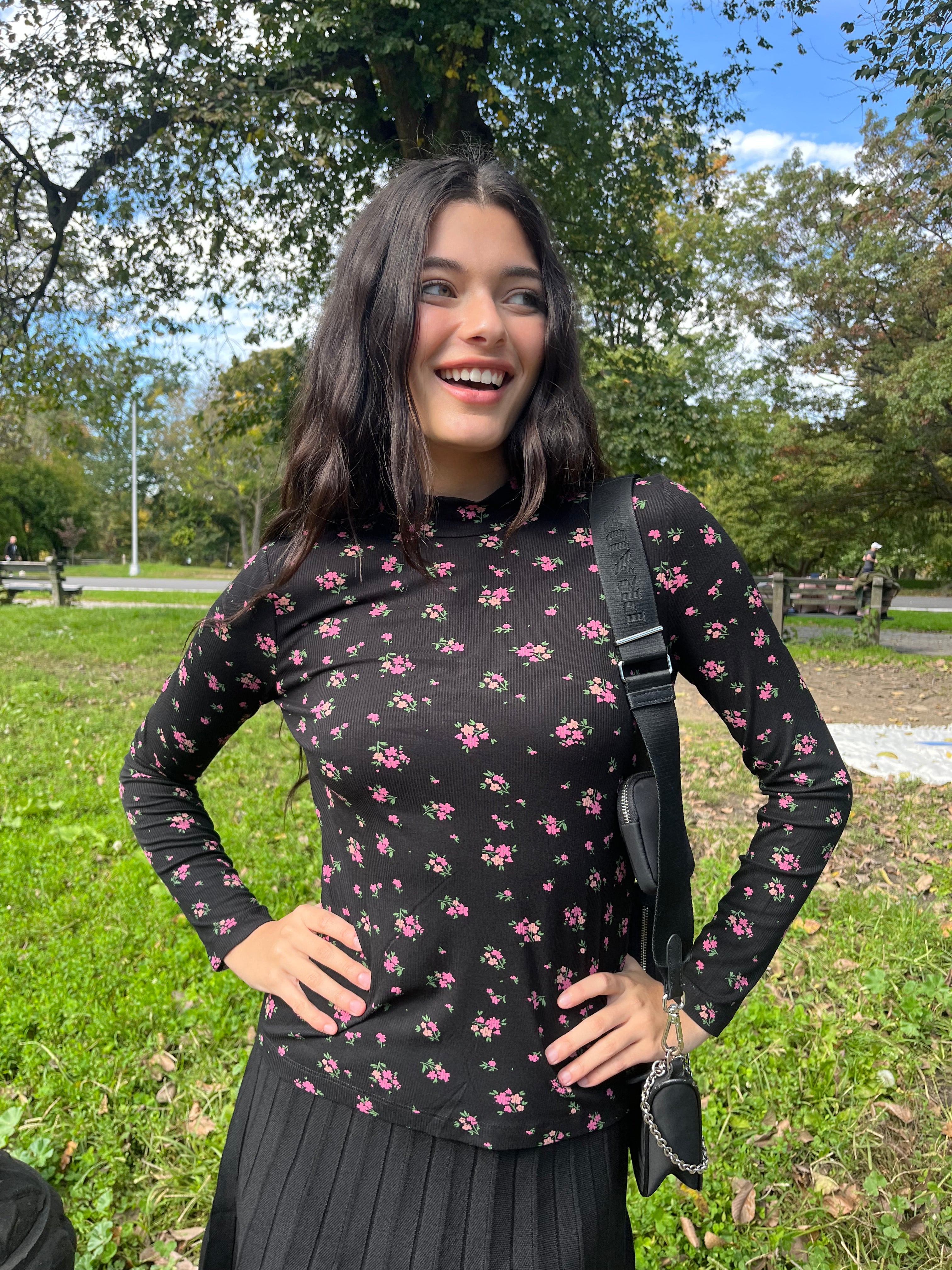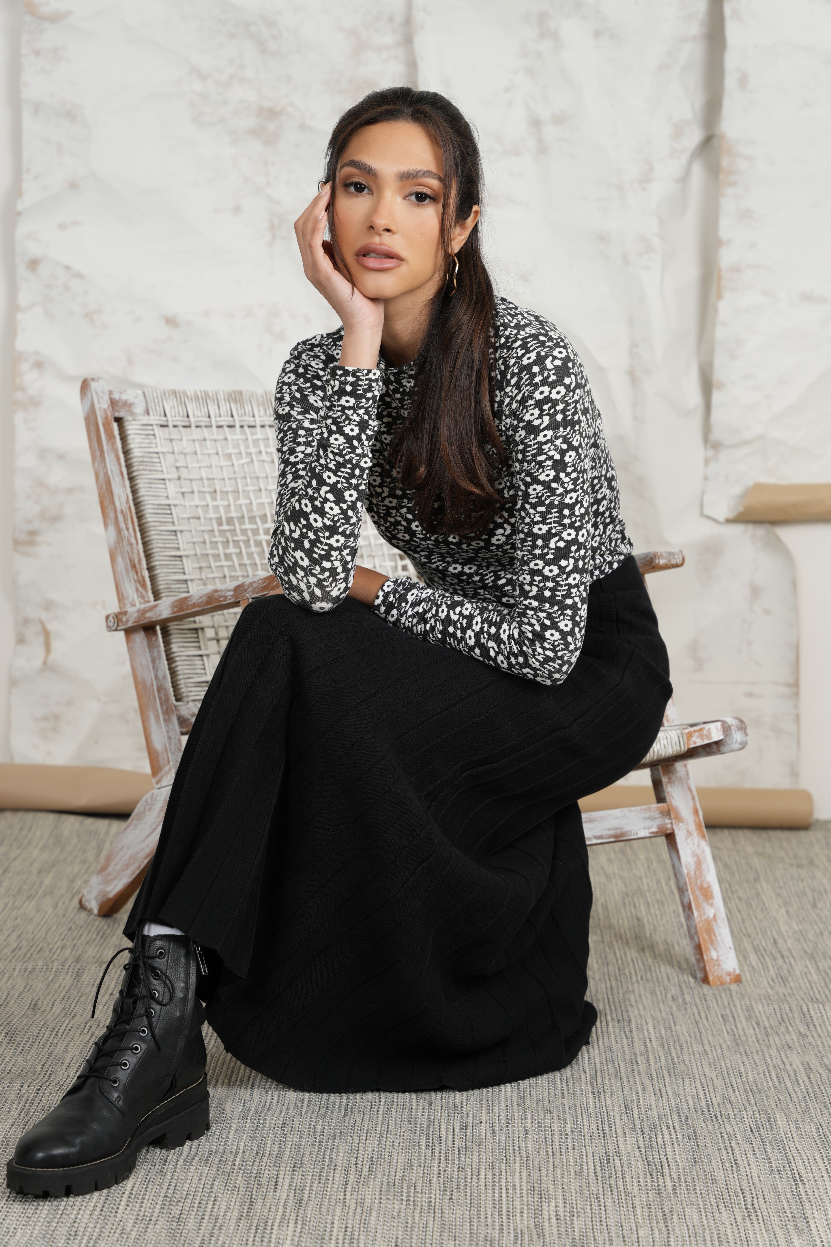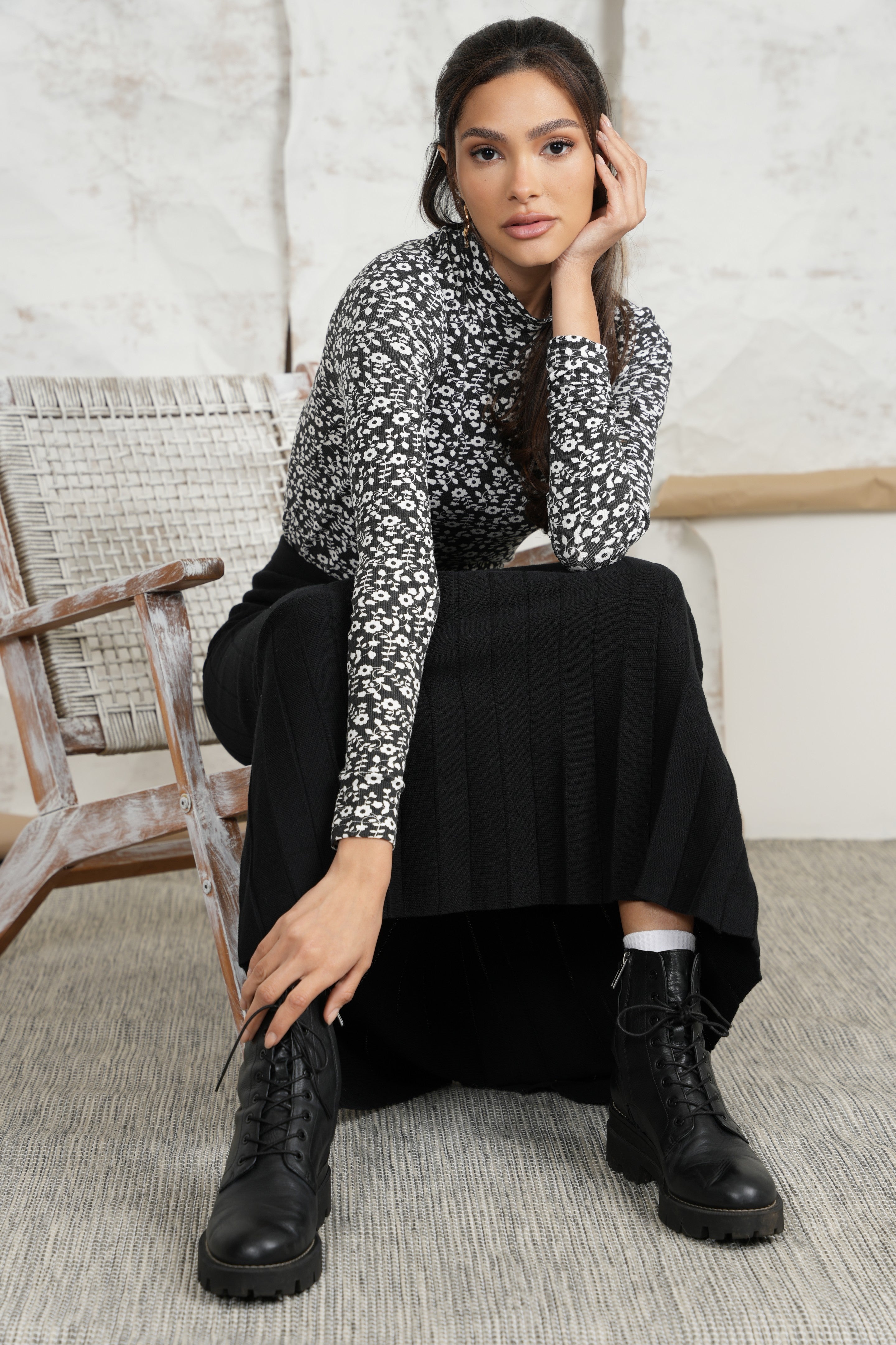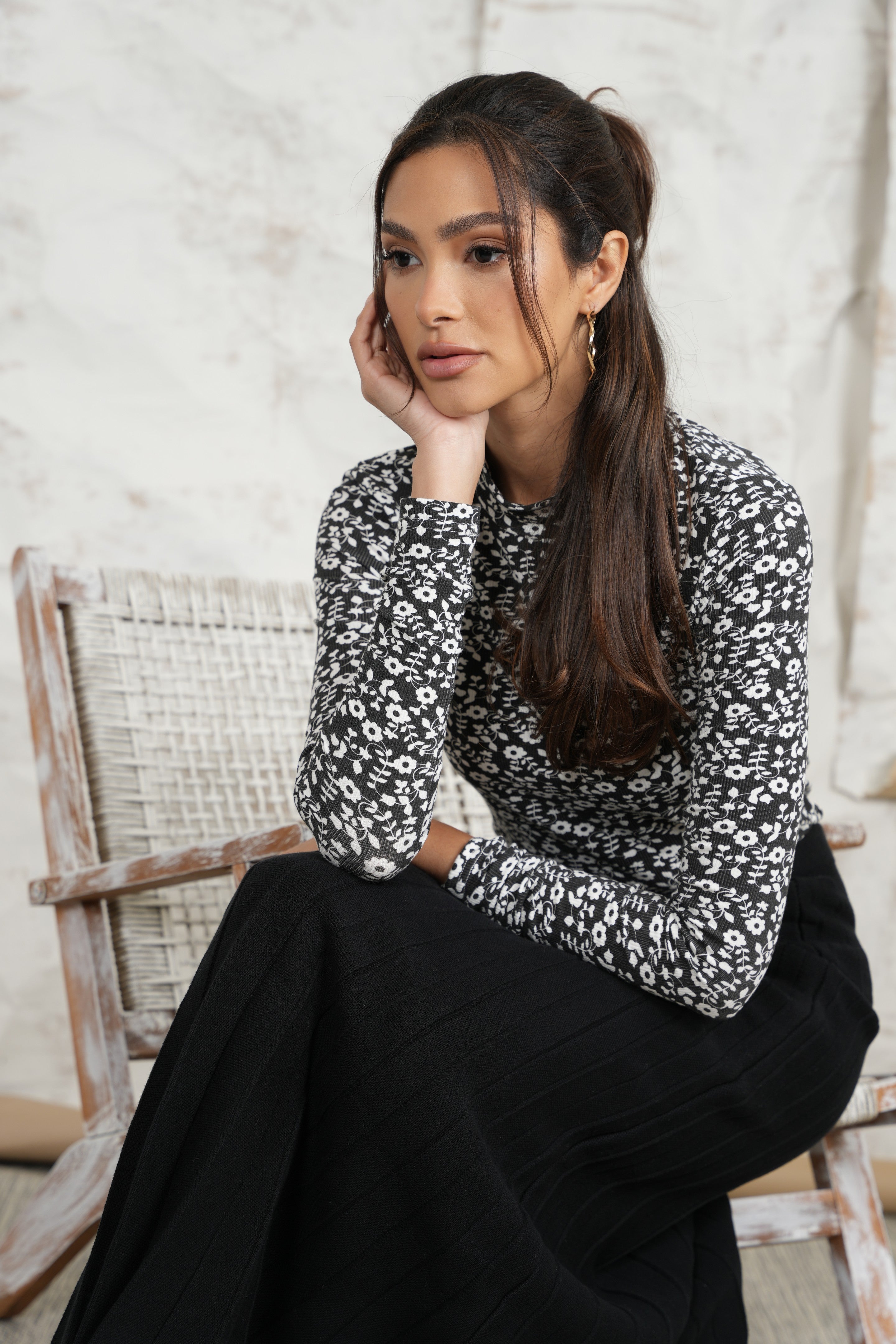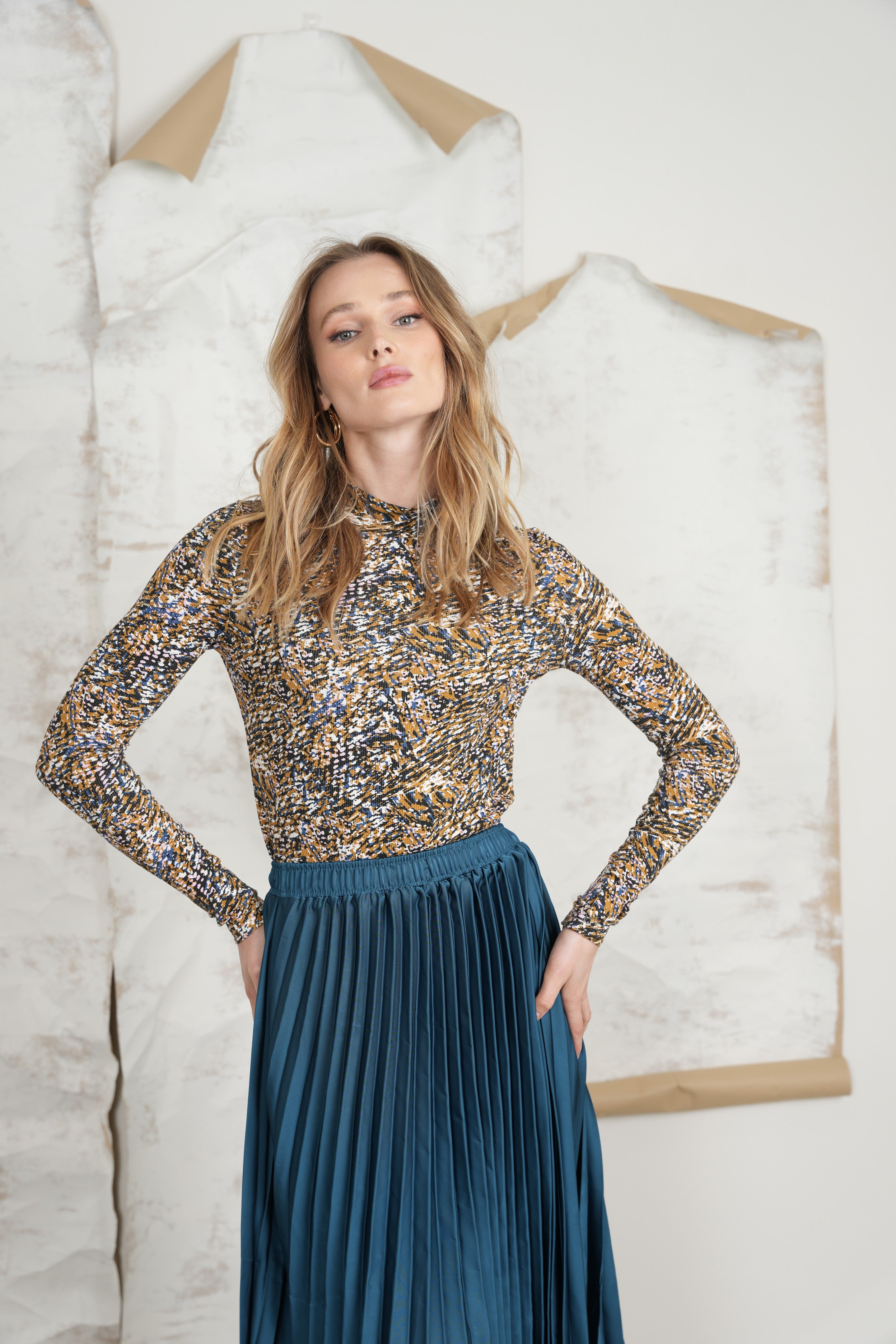 Print Rib Mock Neck