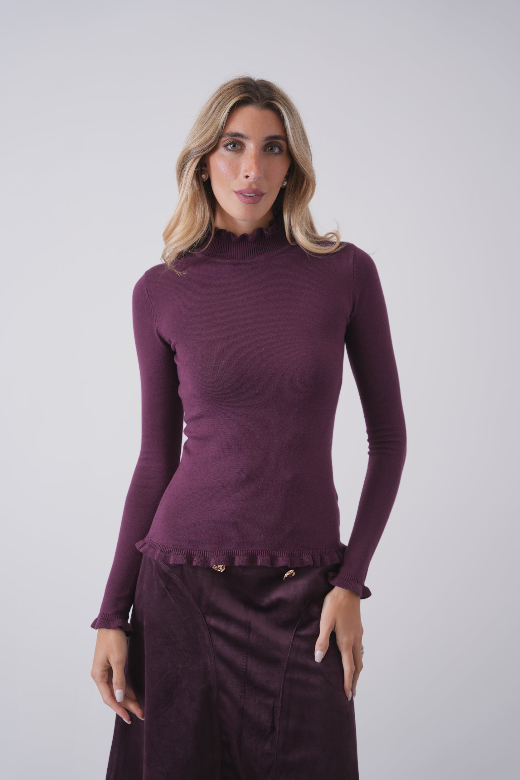 Soft Ruffle Mock Neck