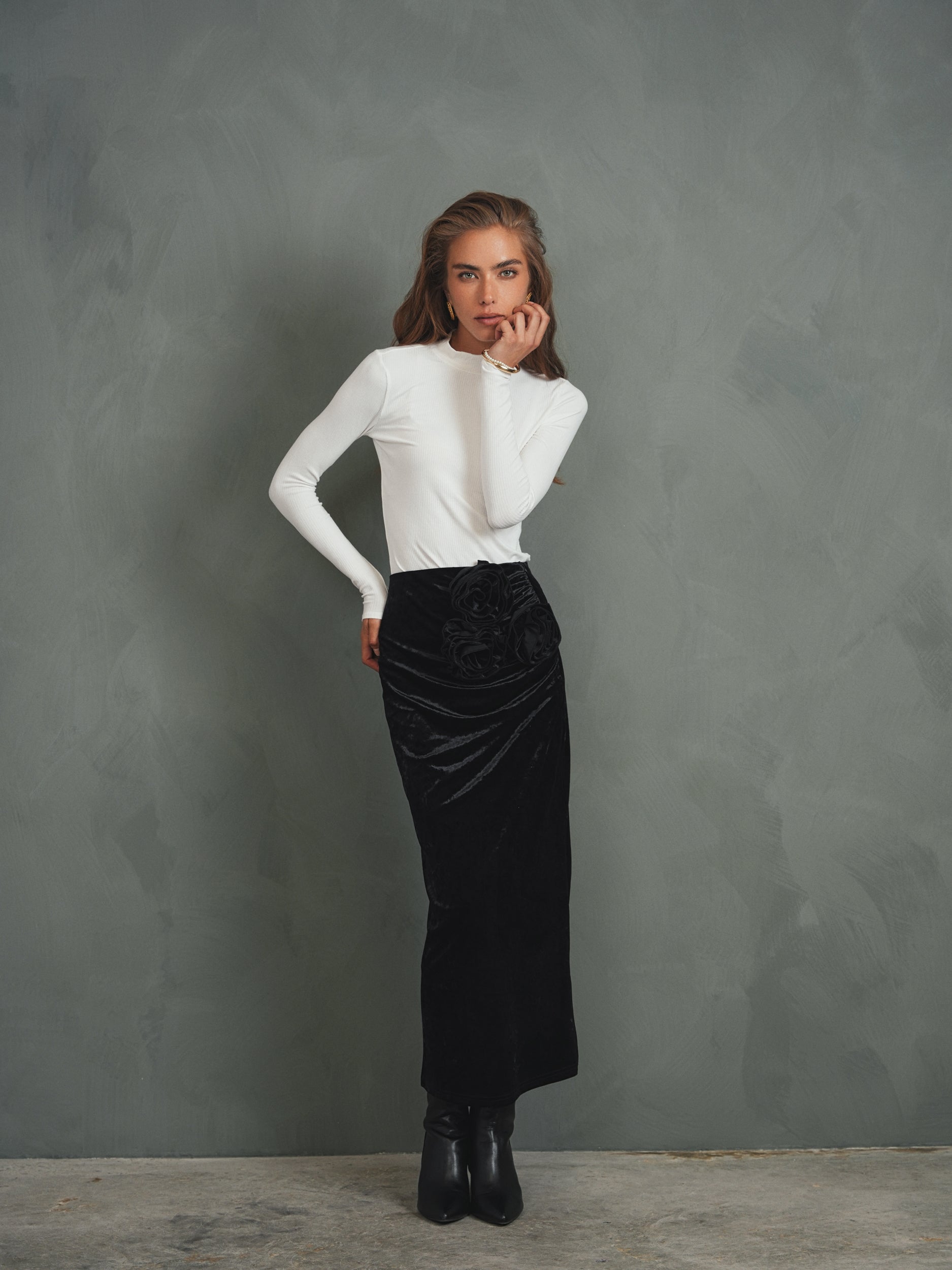 Rossette Velour Skirt