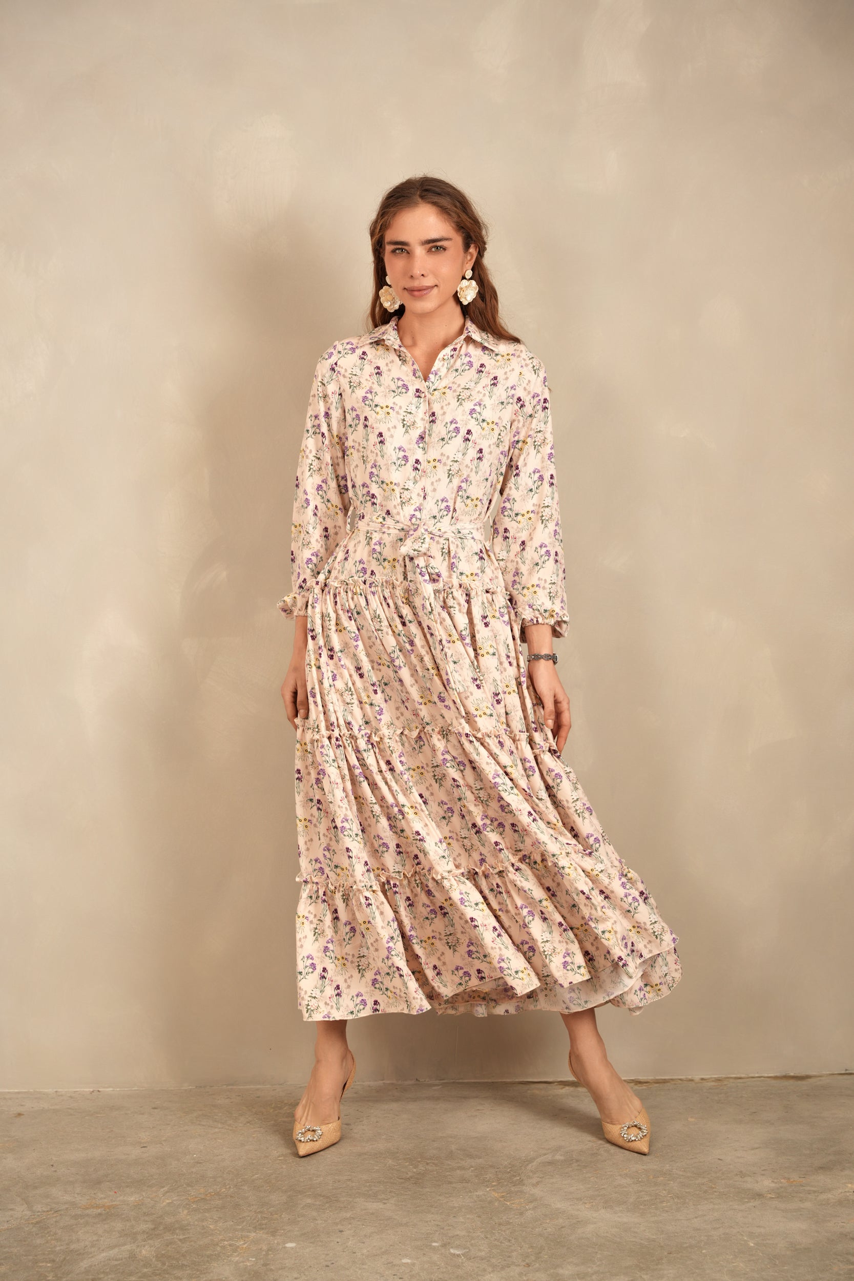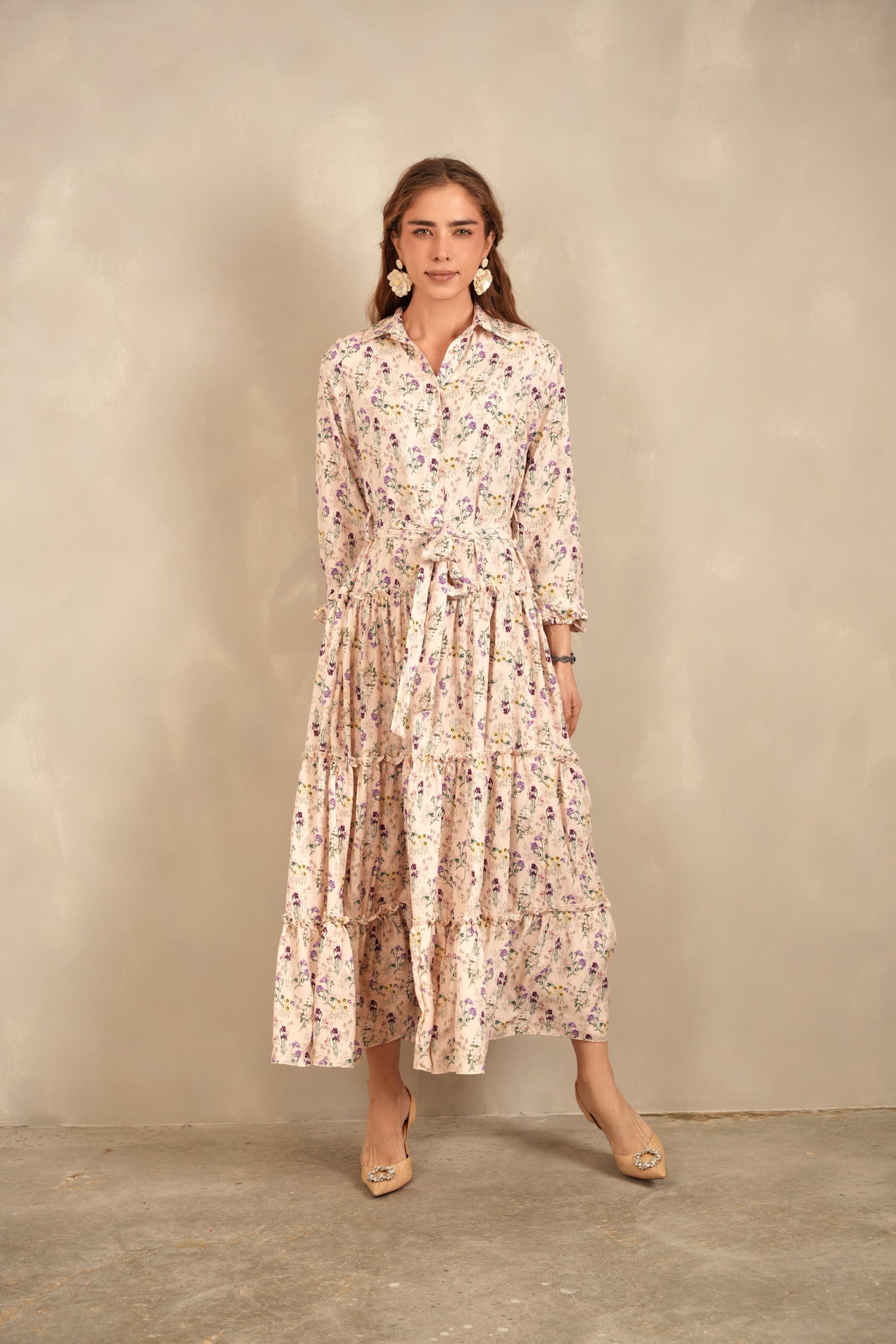 Belted Maxi Tiered Dress