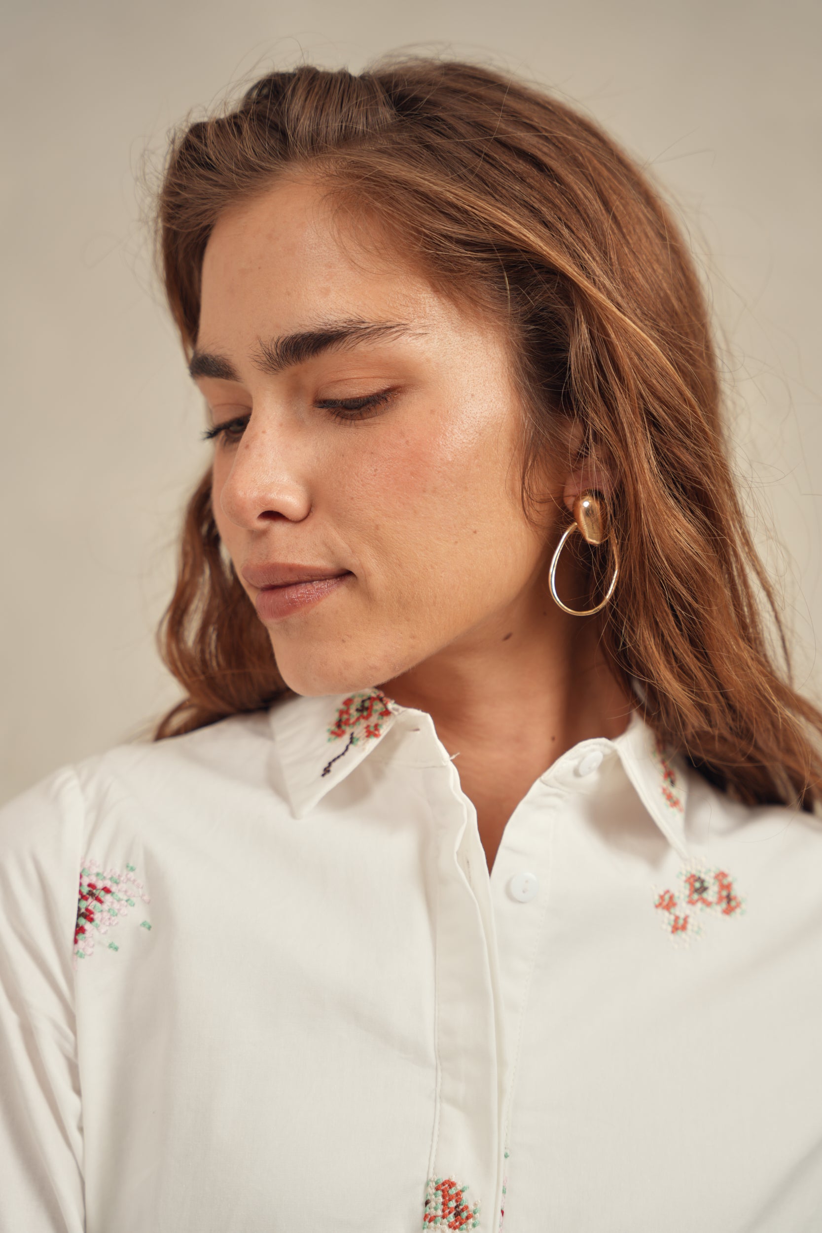 - Front buttons with a covered placket
