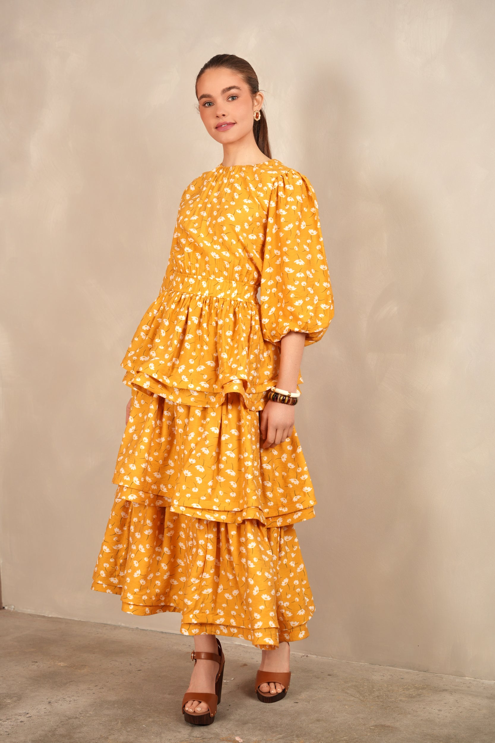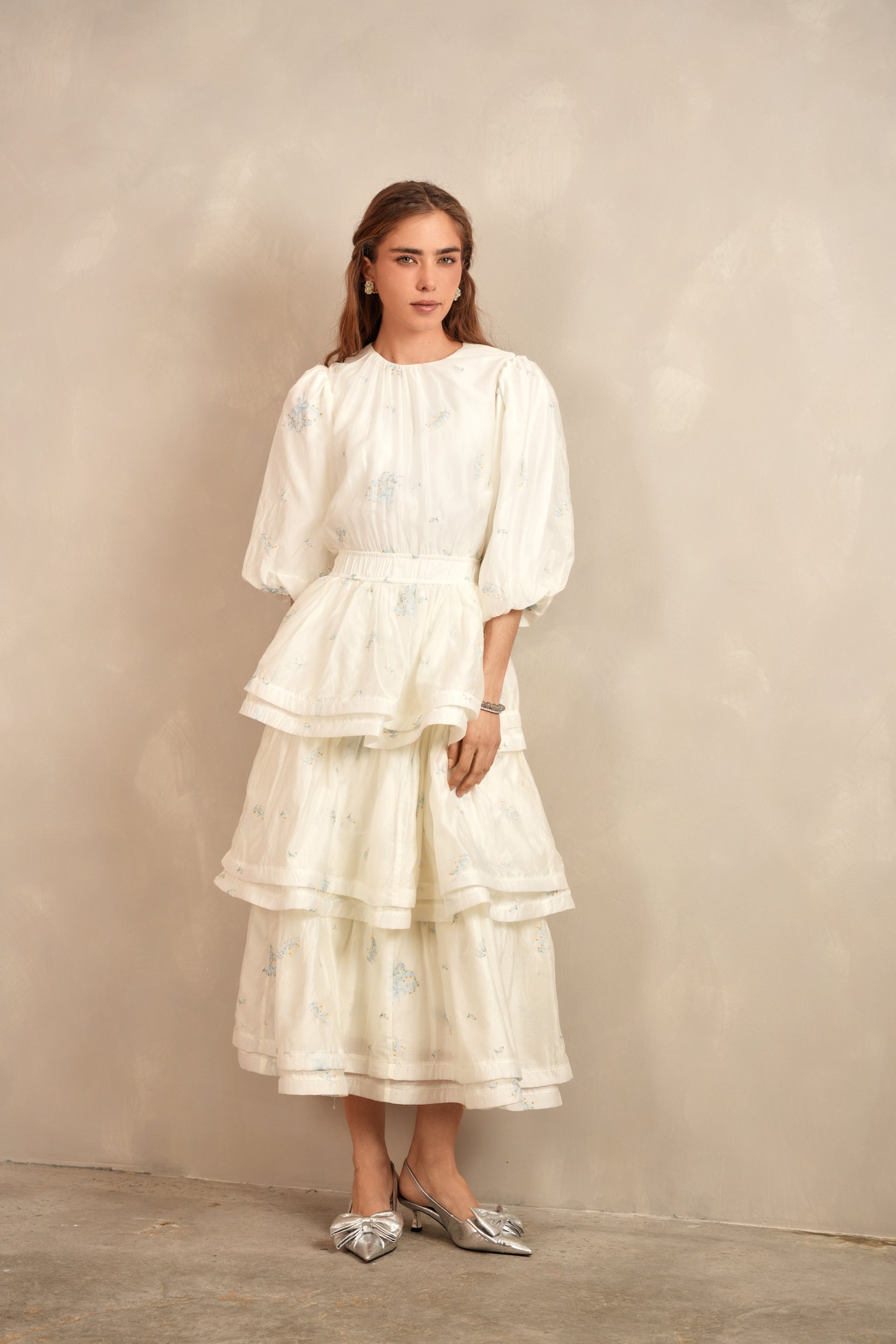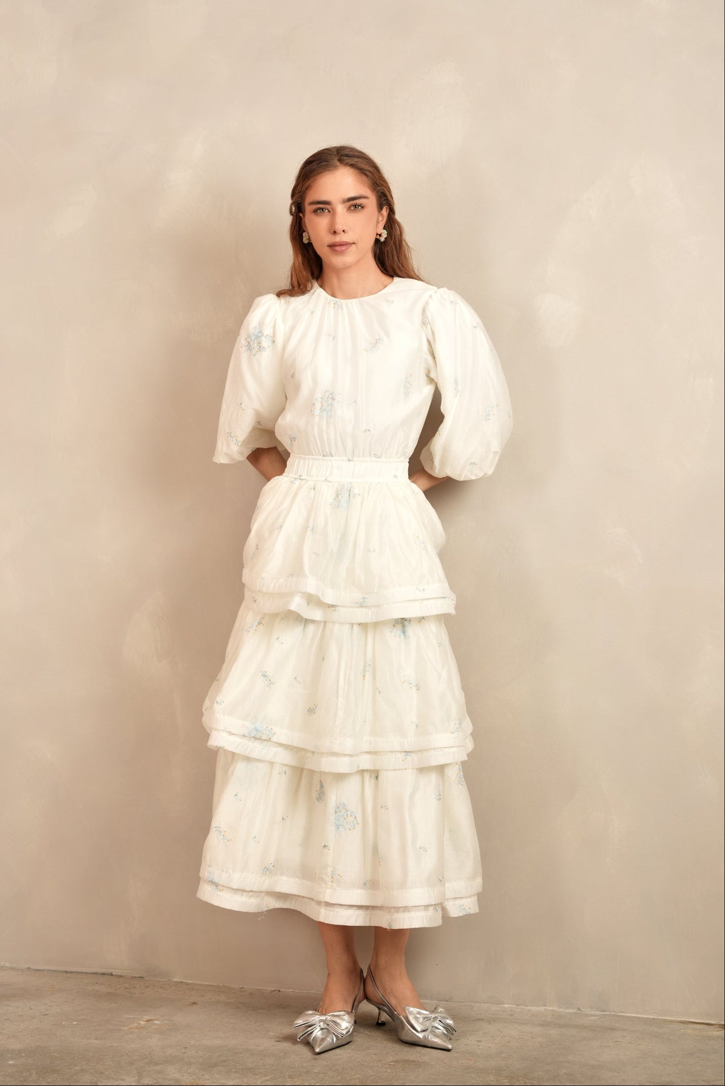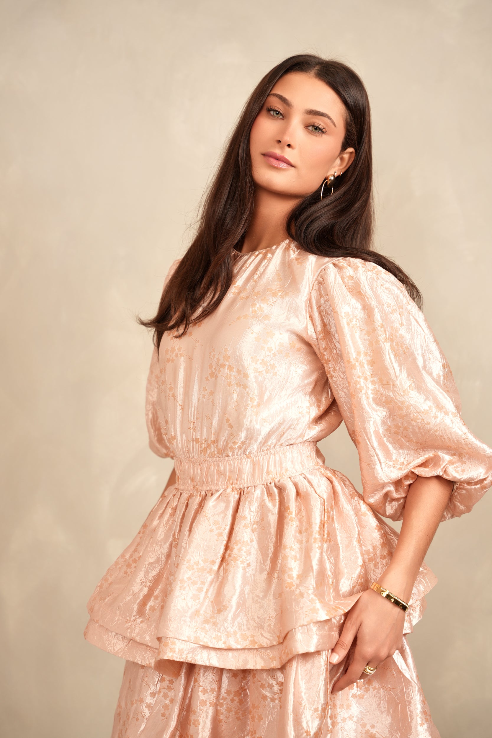 - Balloon sleeves with elastic cuff