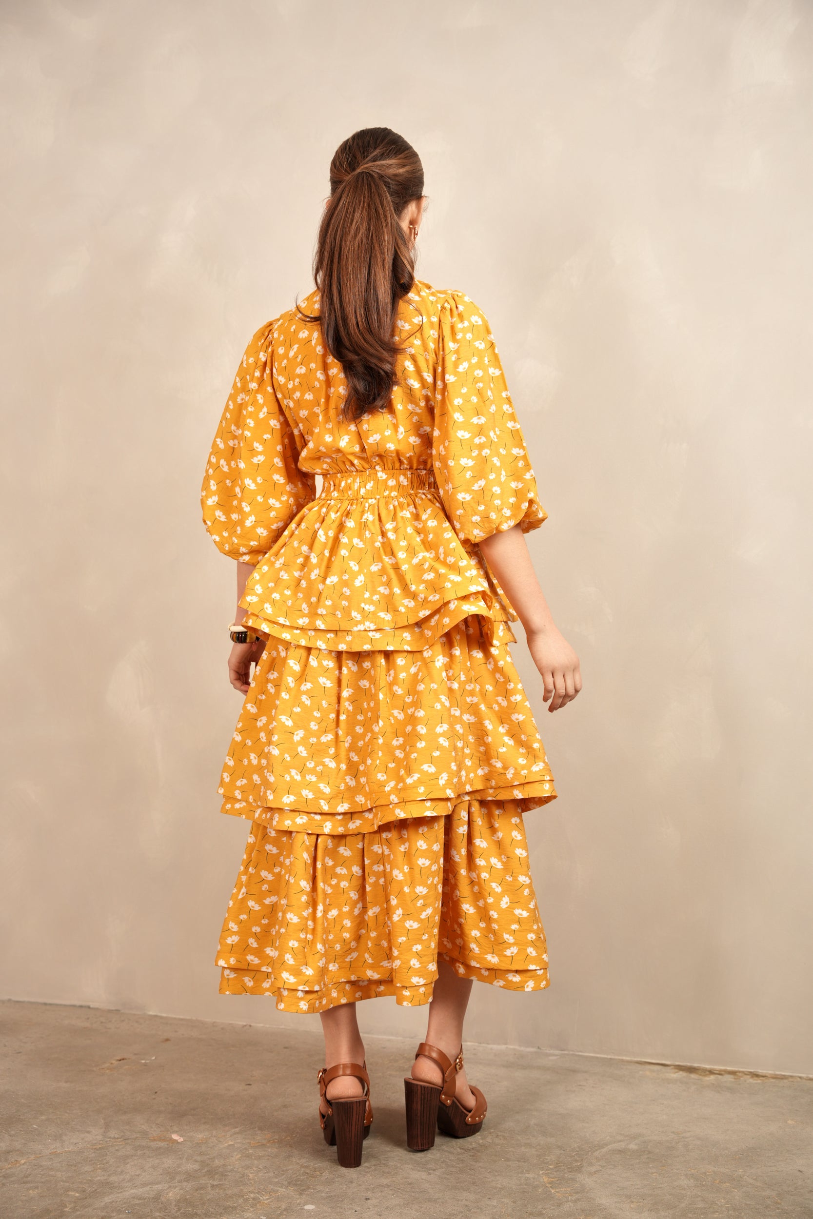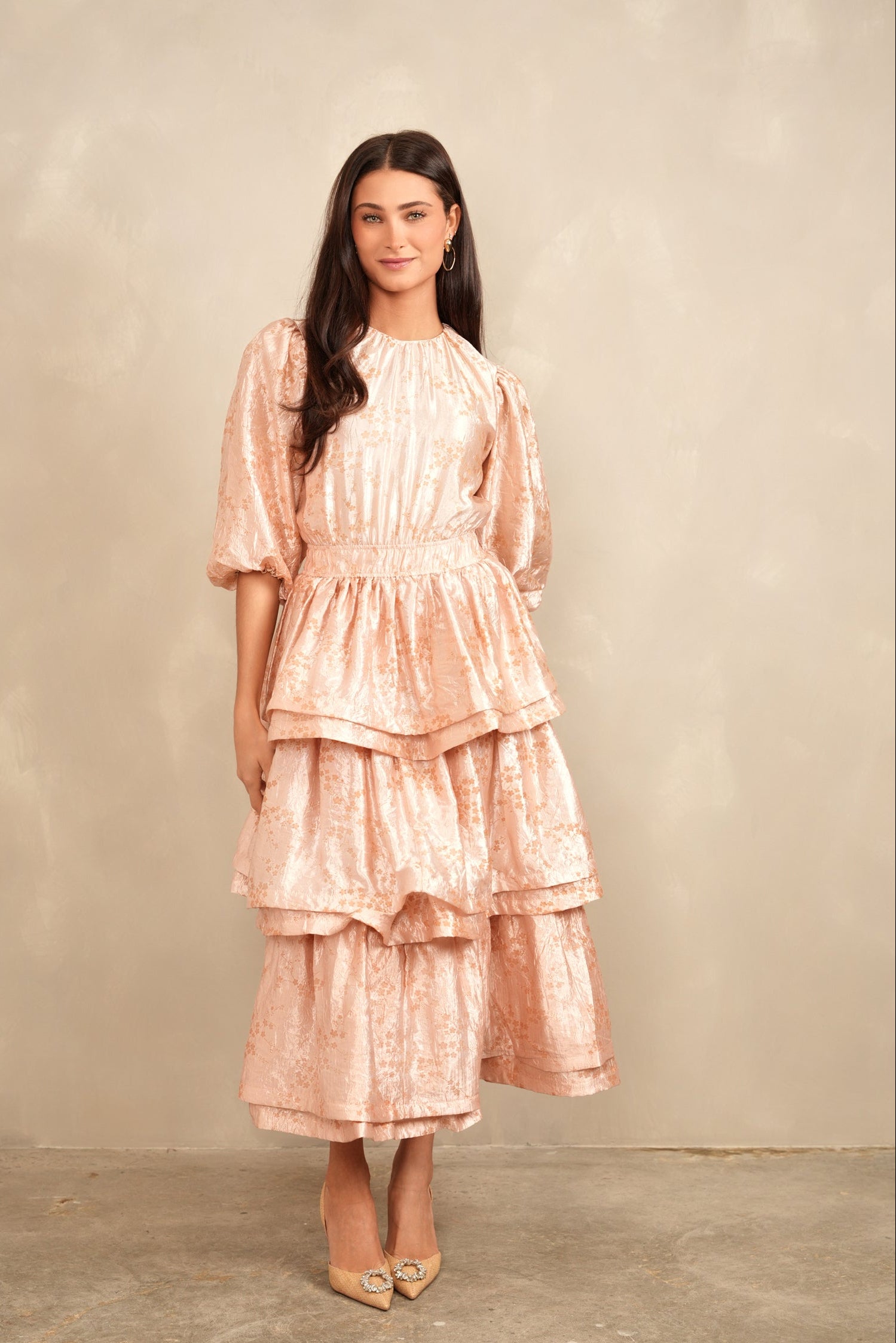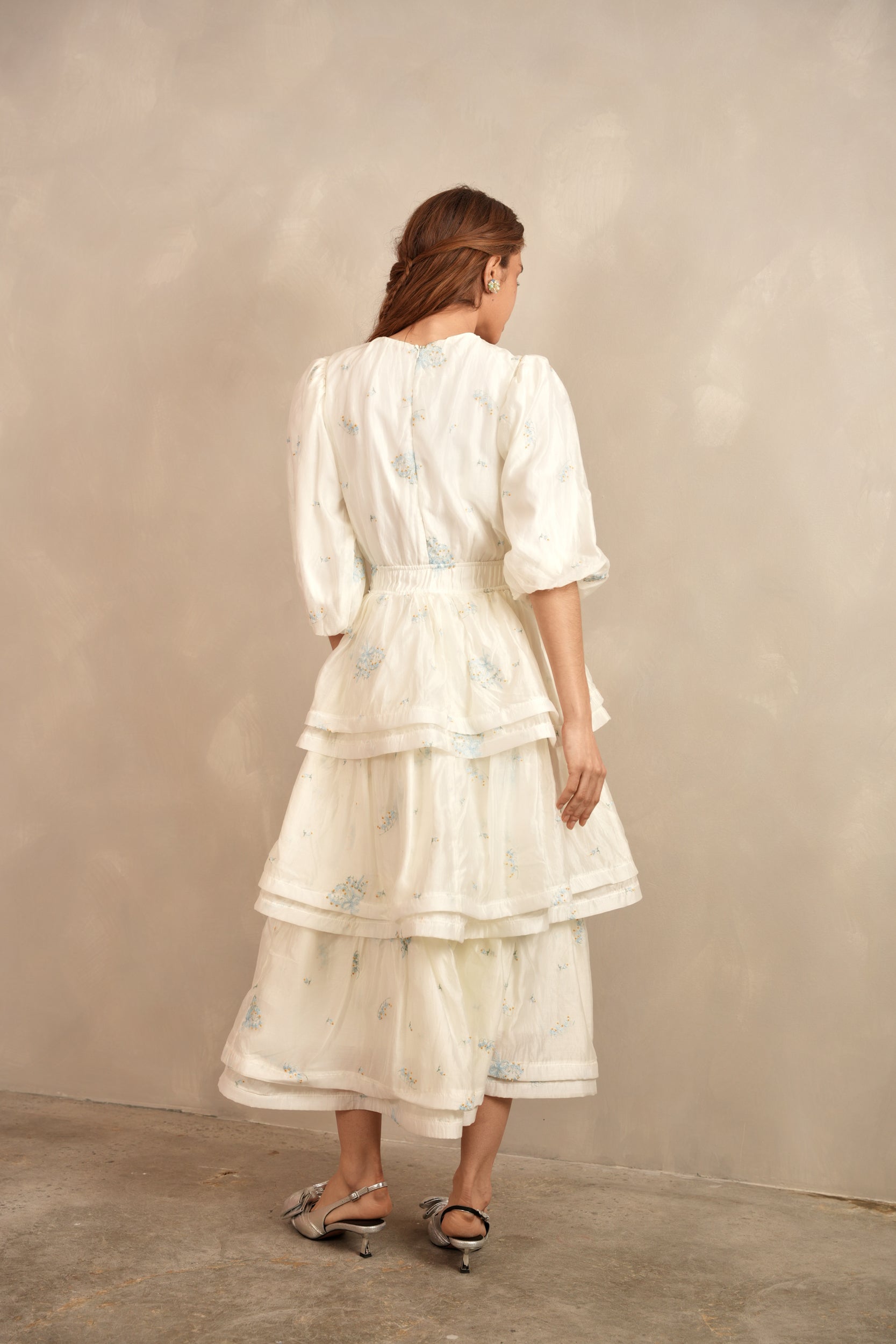 - Balloon sleeves with elastic cuff