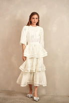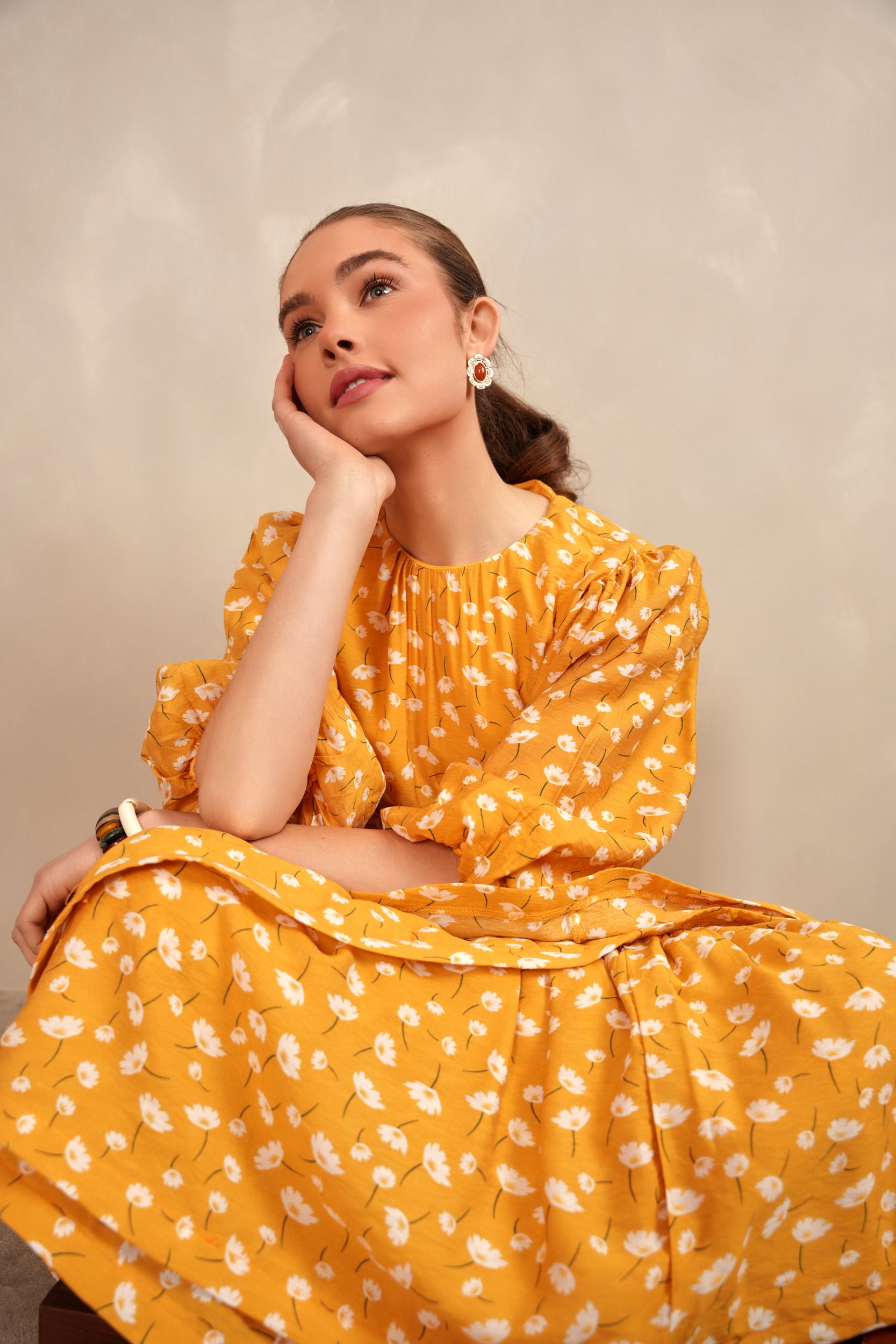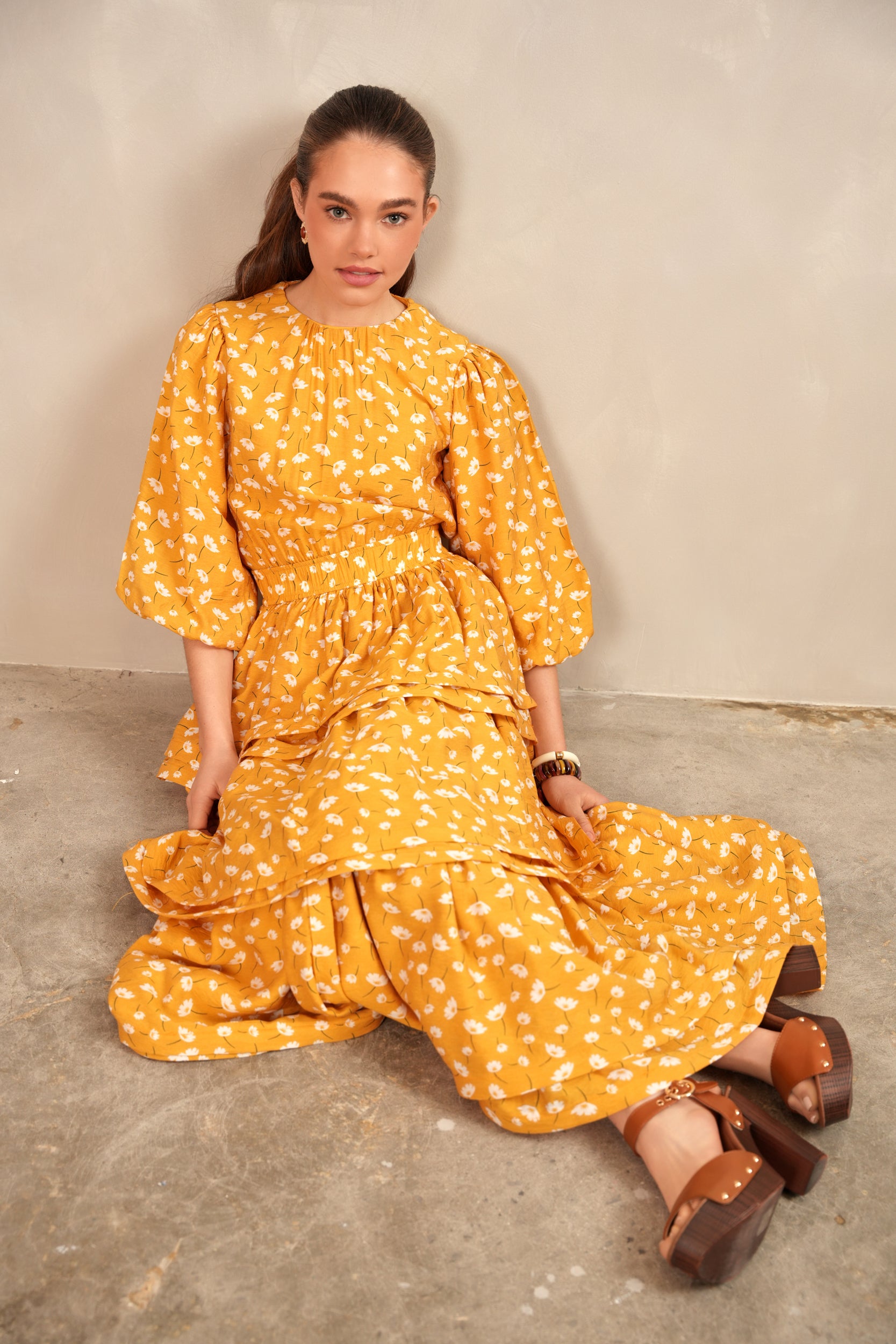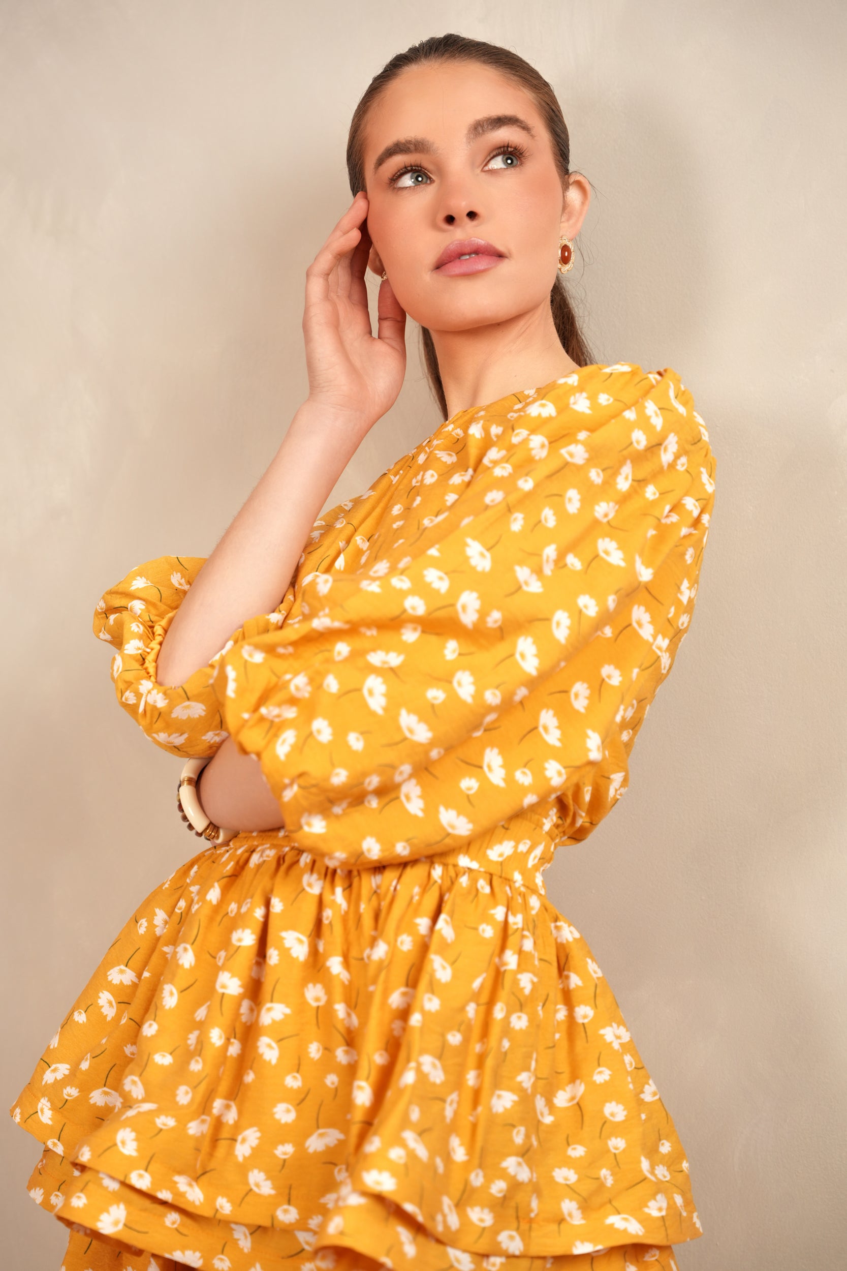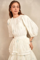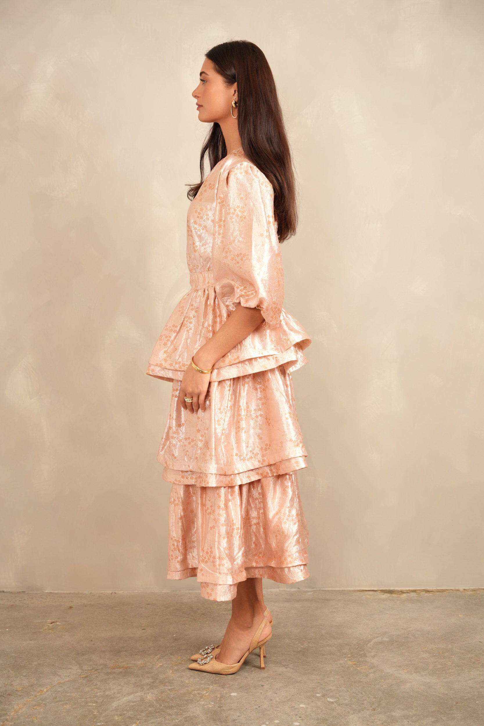 - Balloon sleeves with elastic cuff