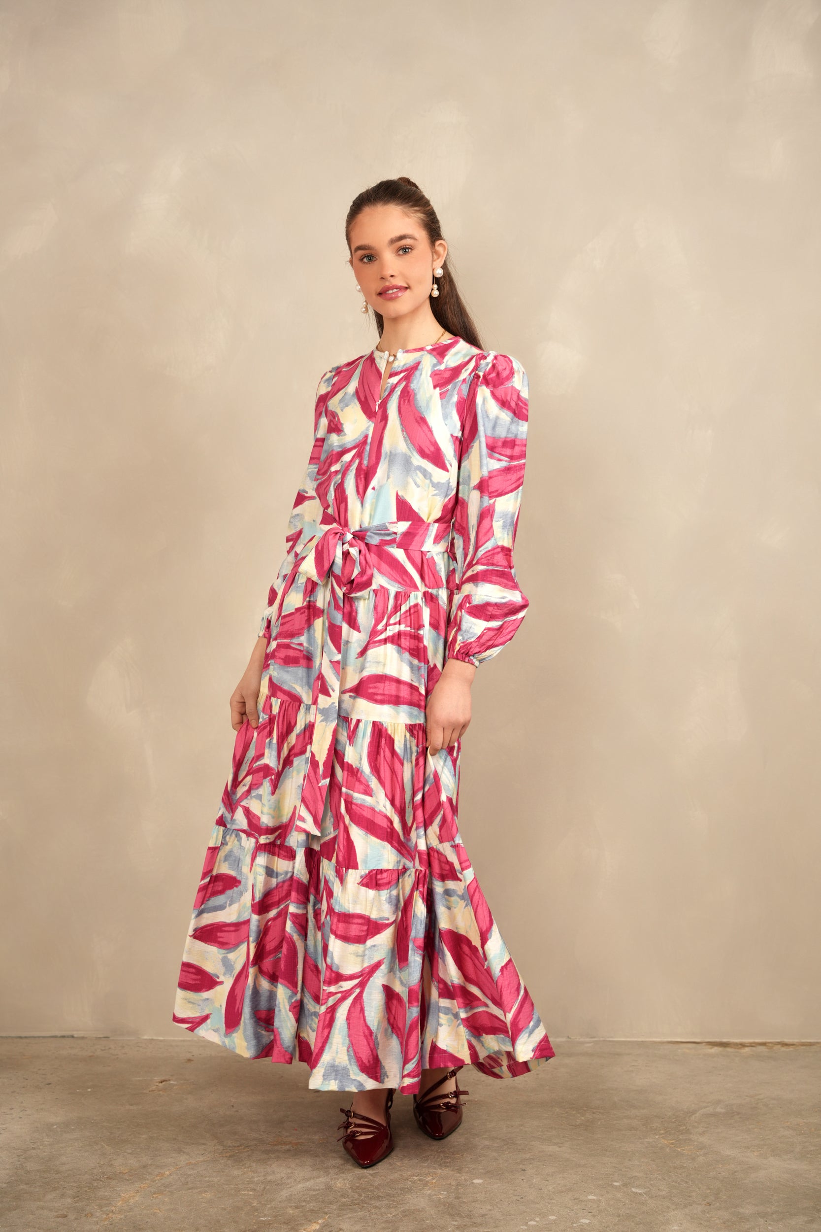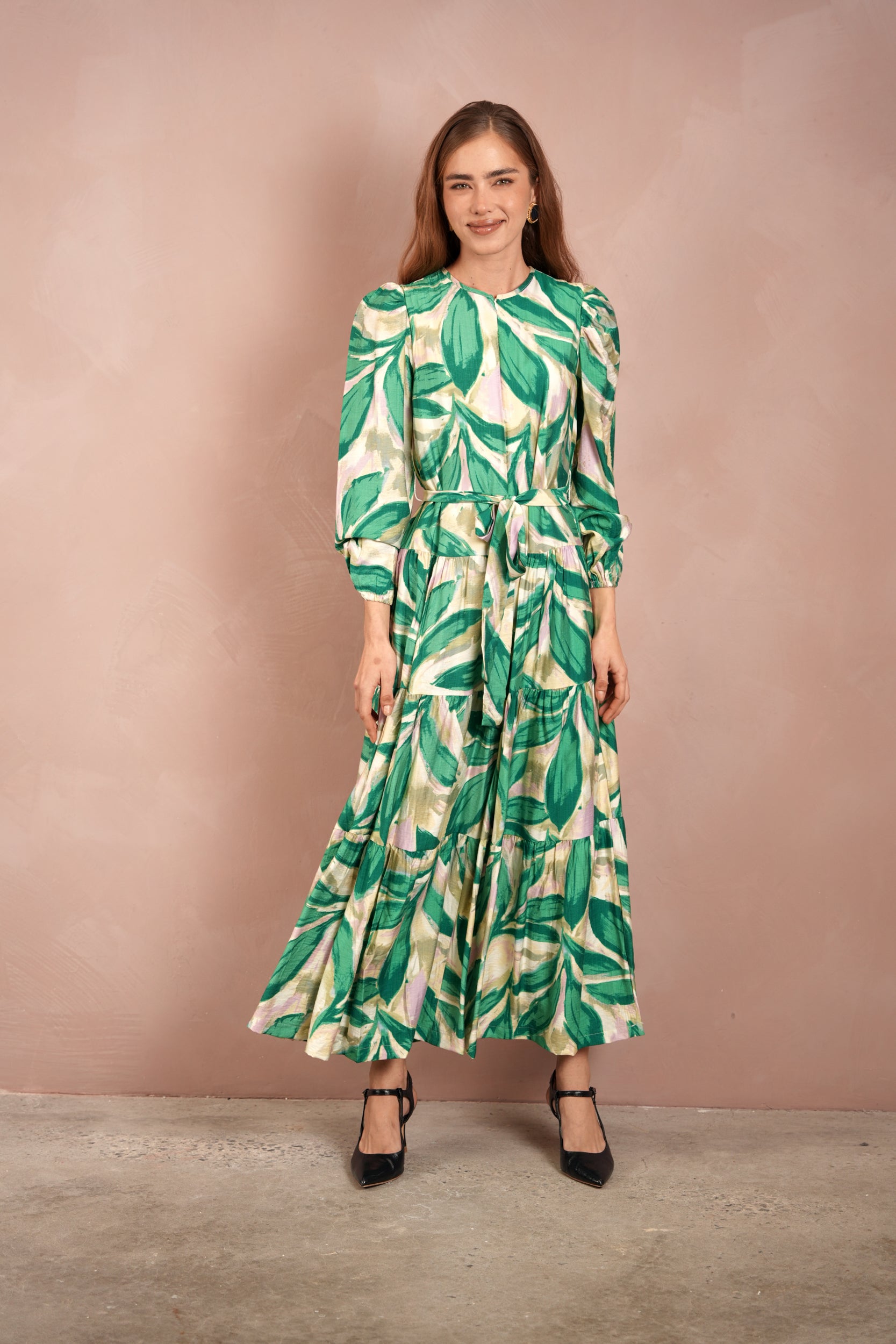 Zipper Front Tiered Maxi Dres