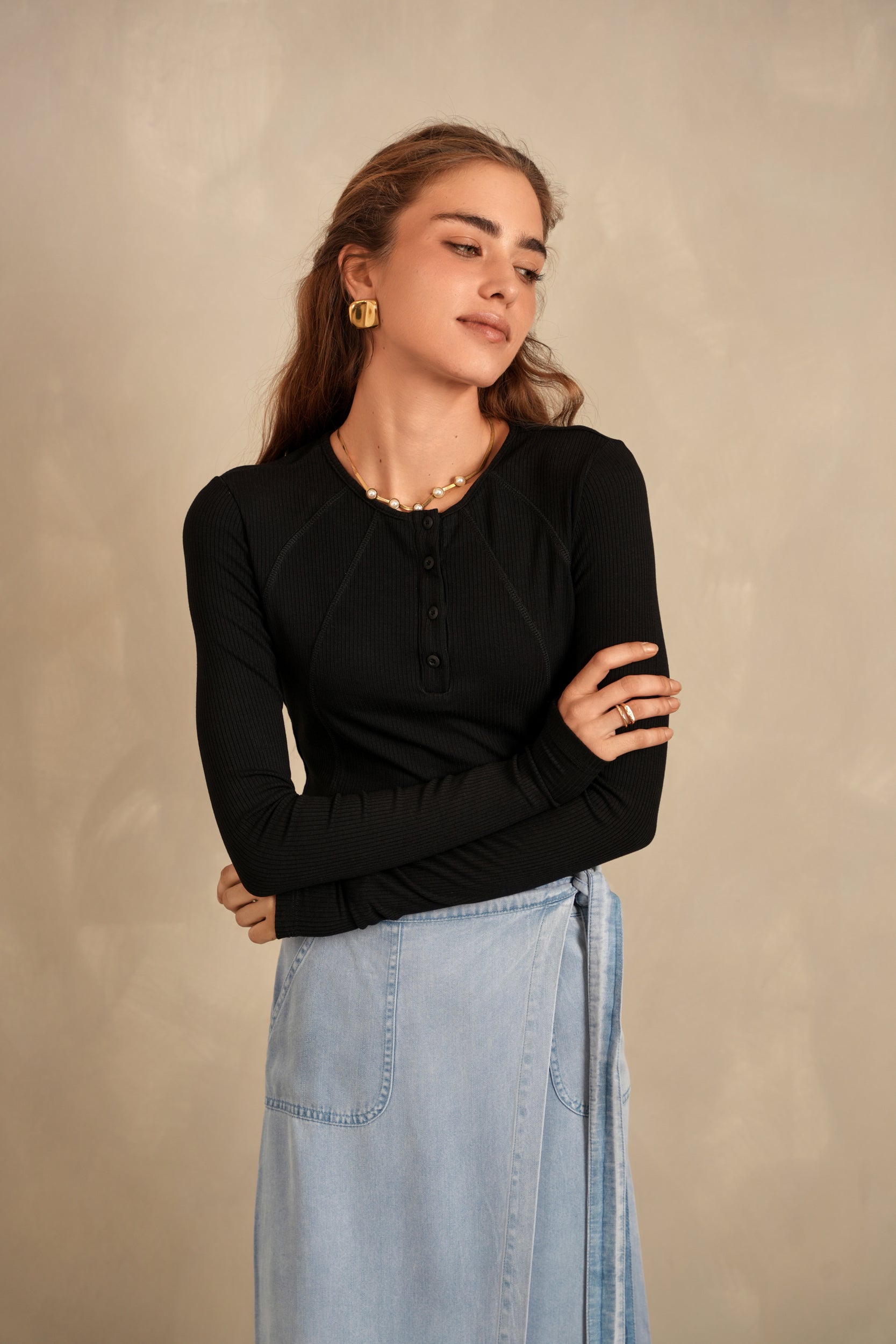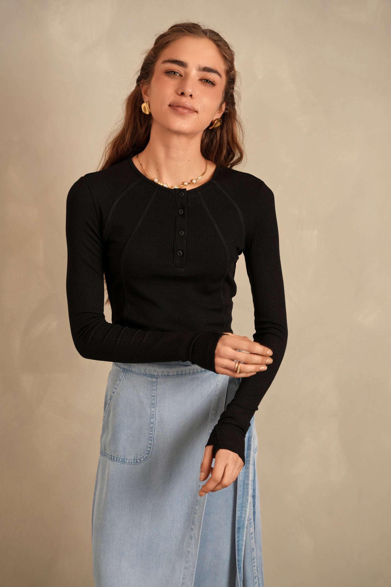 Henley Neck Soft Rib Tee