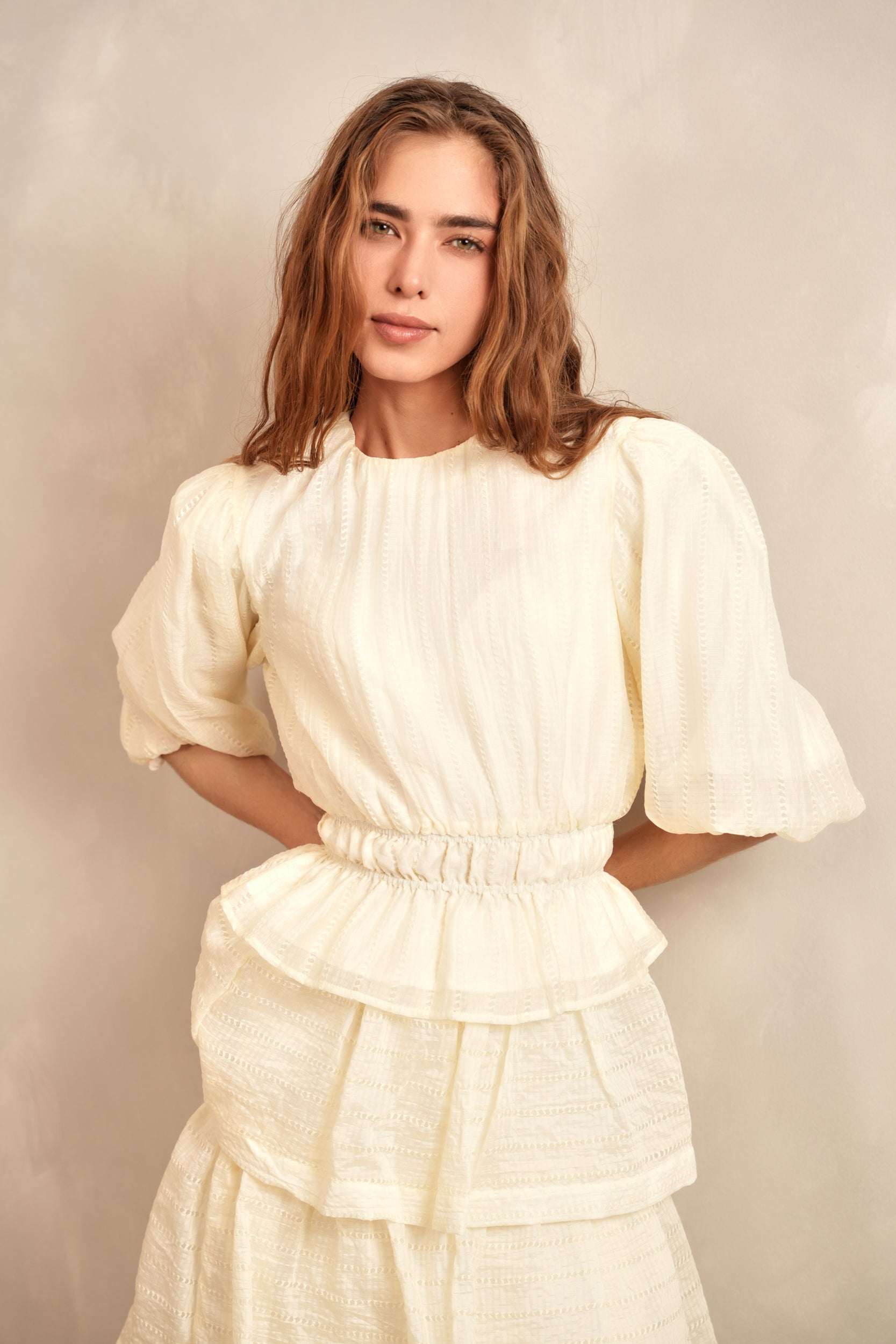 Puff Sleeve Top w/ Waist Smocking