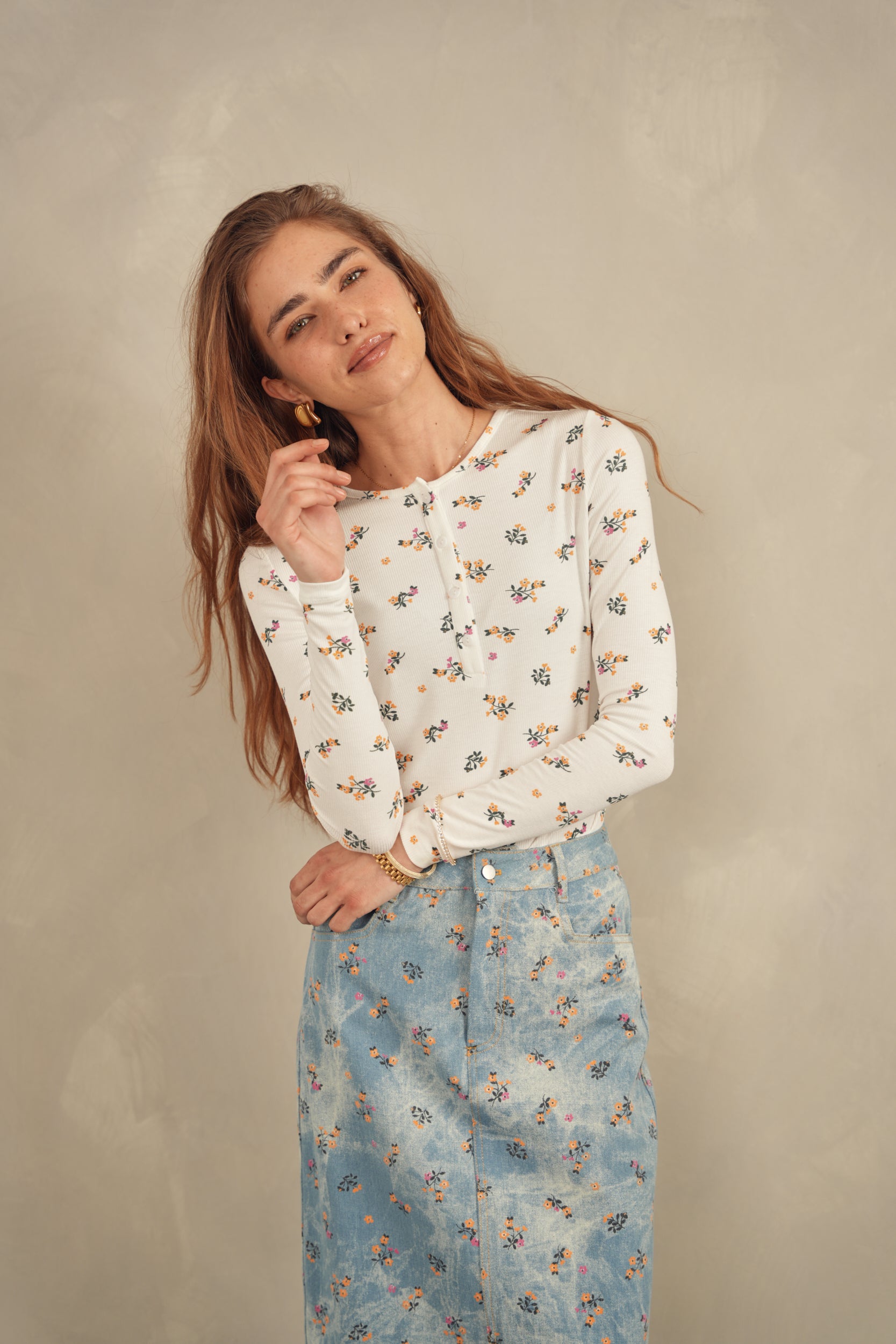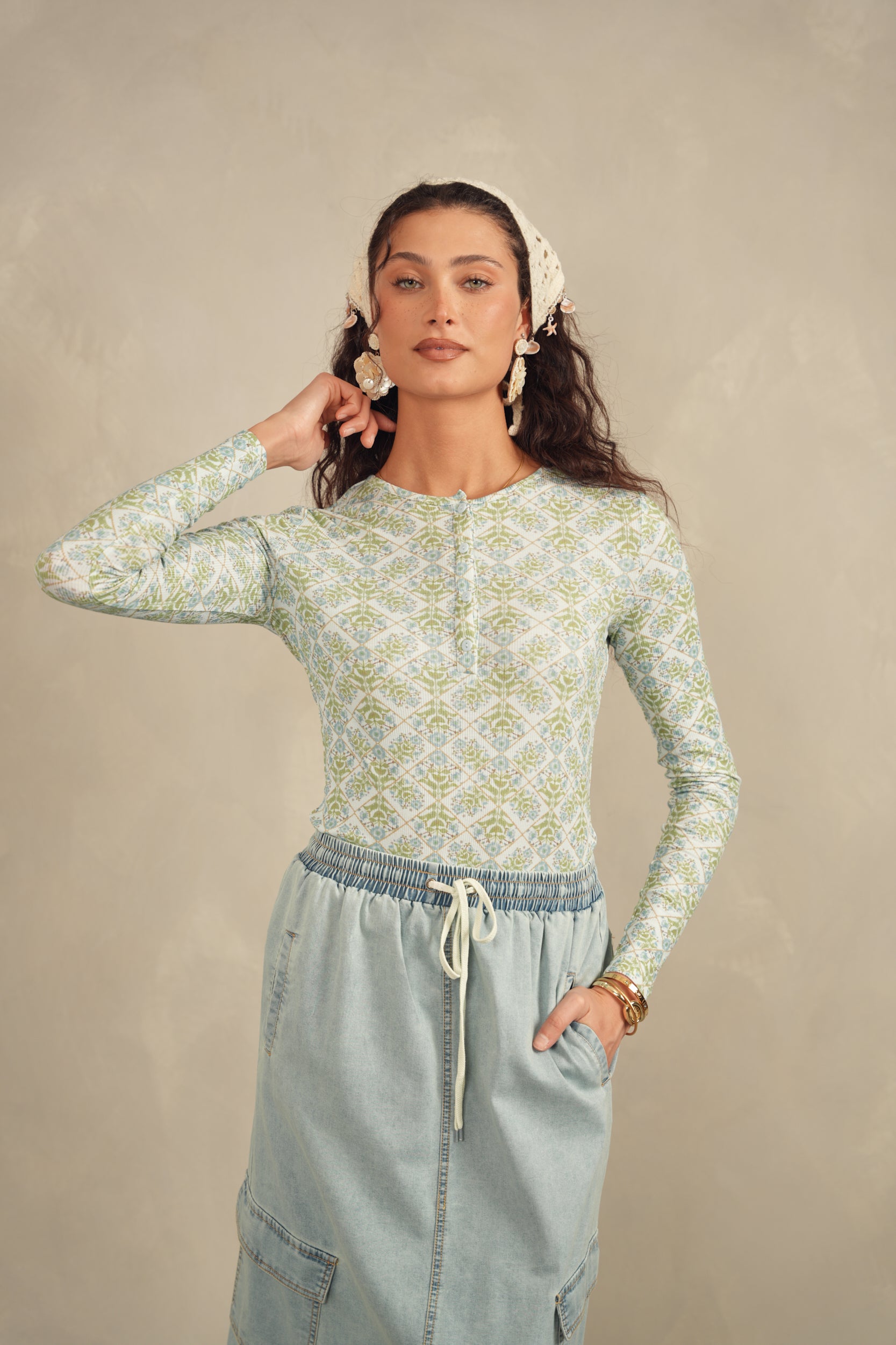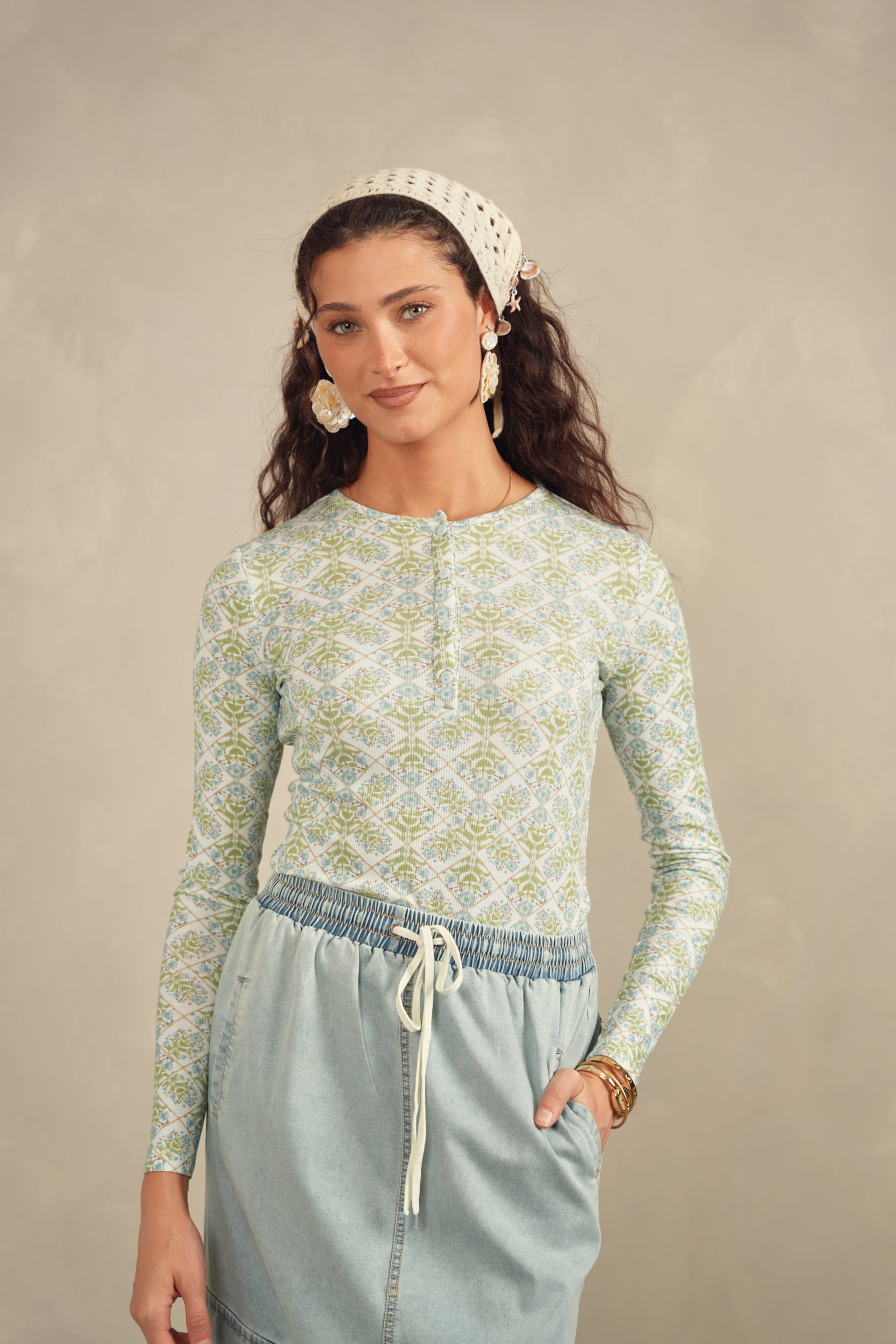 Henley Print Top