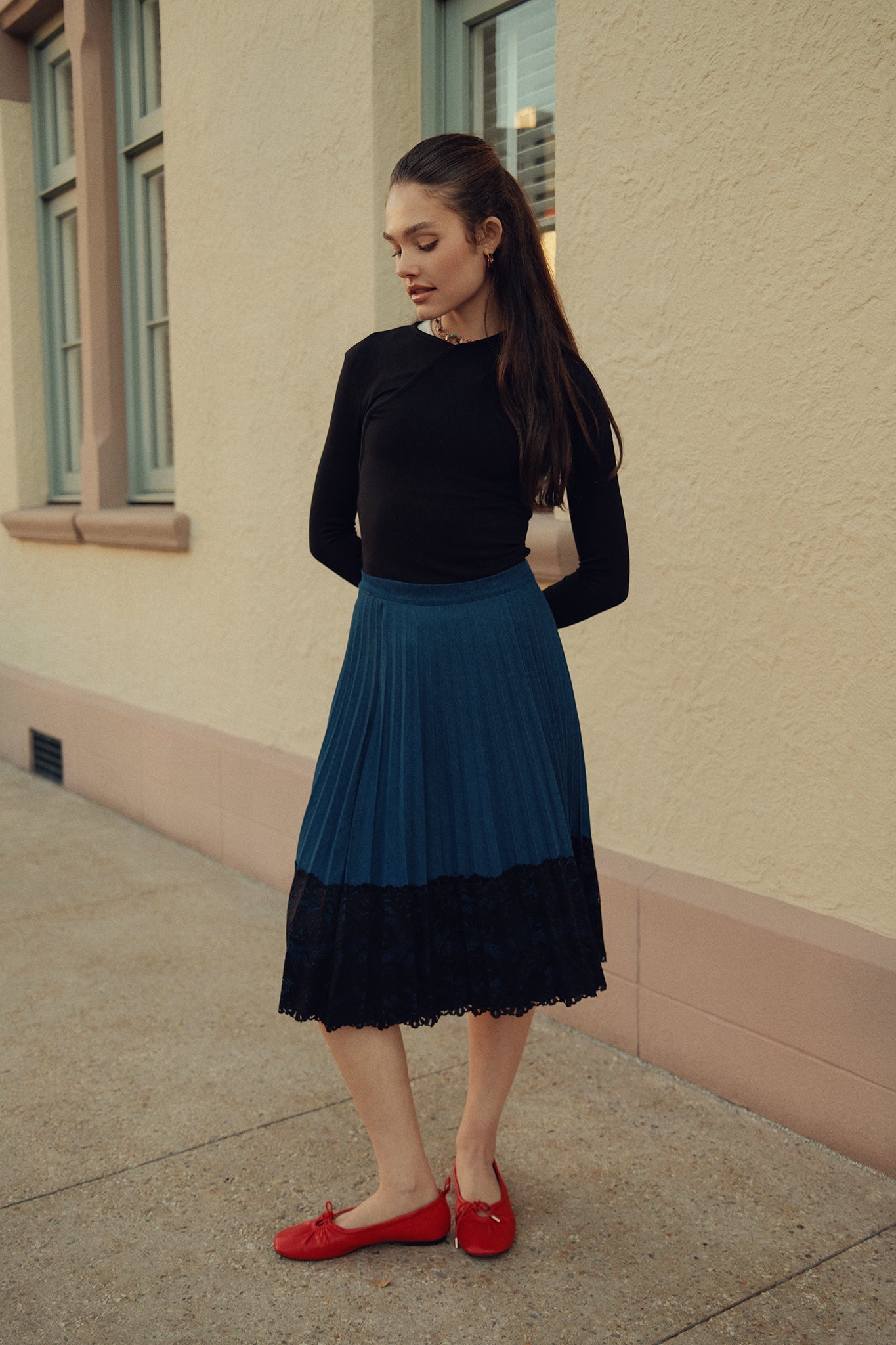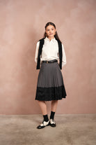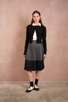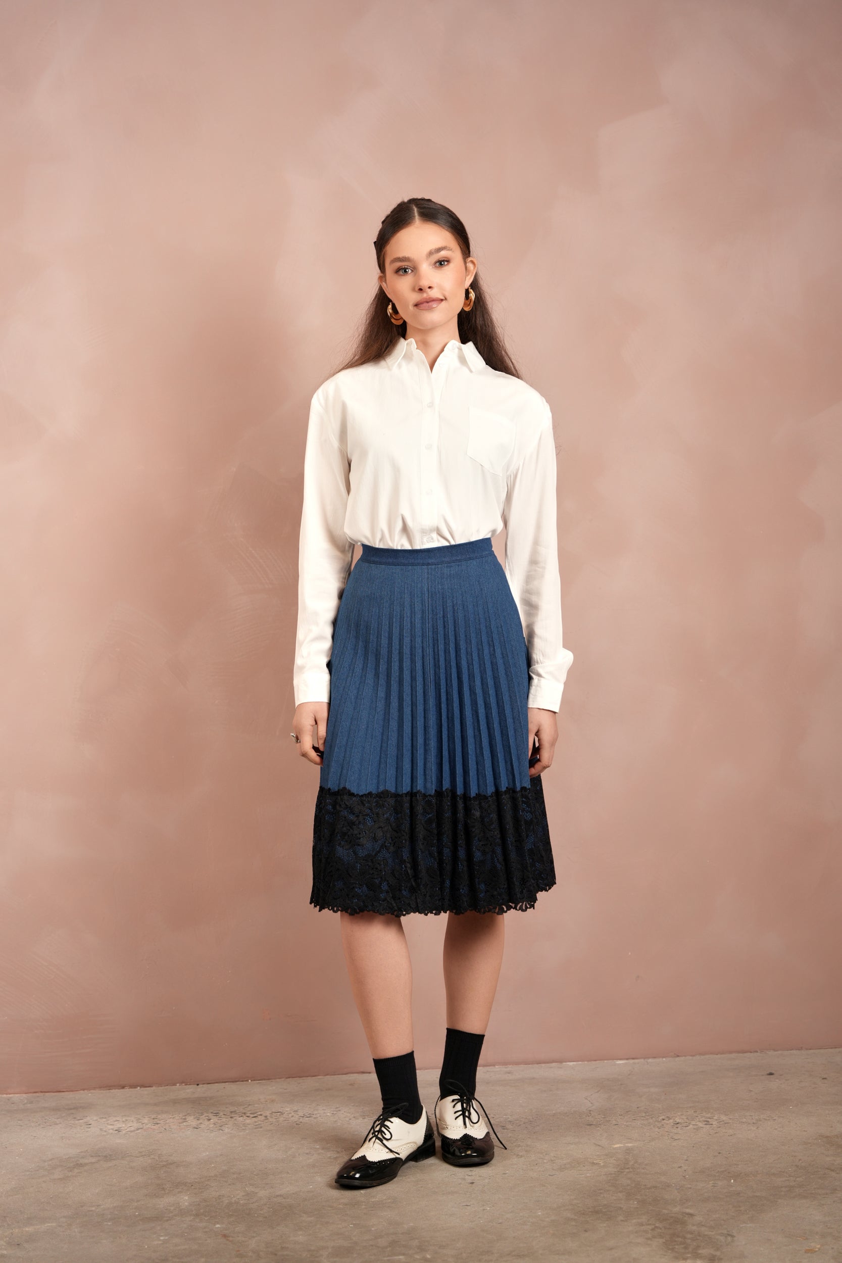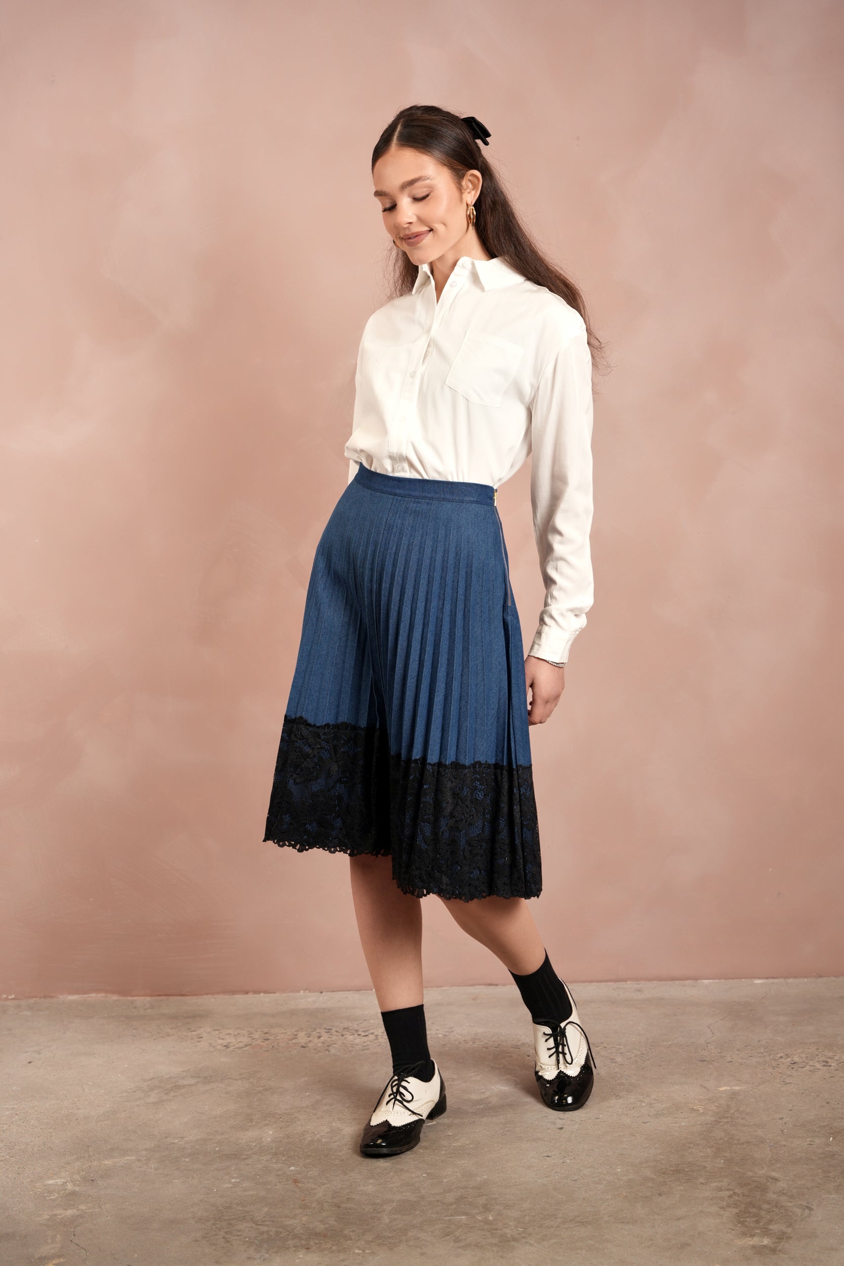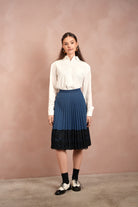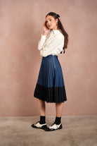Lace Pleated Denim Skirt