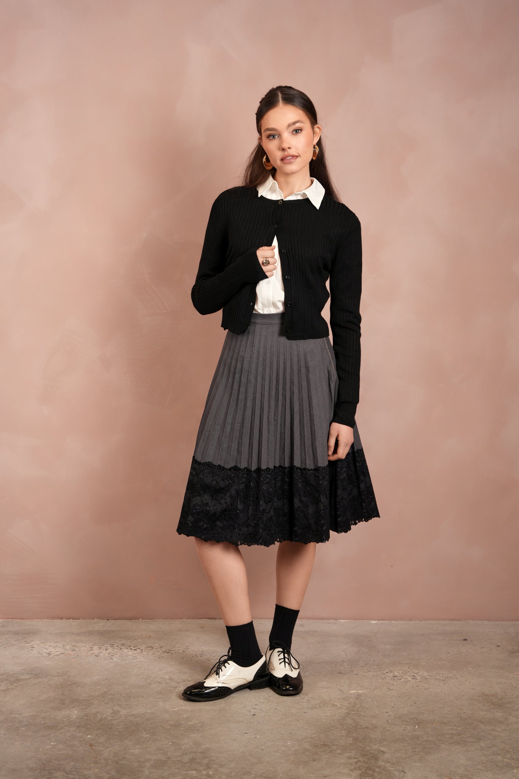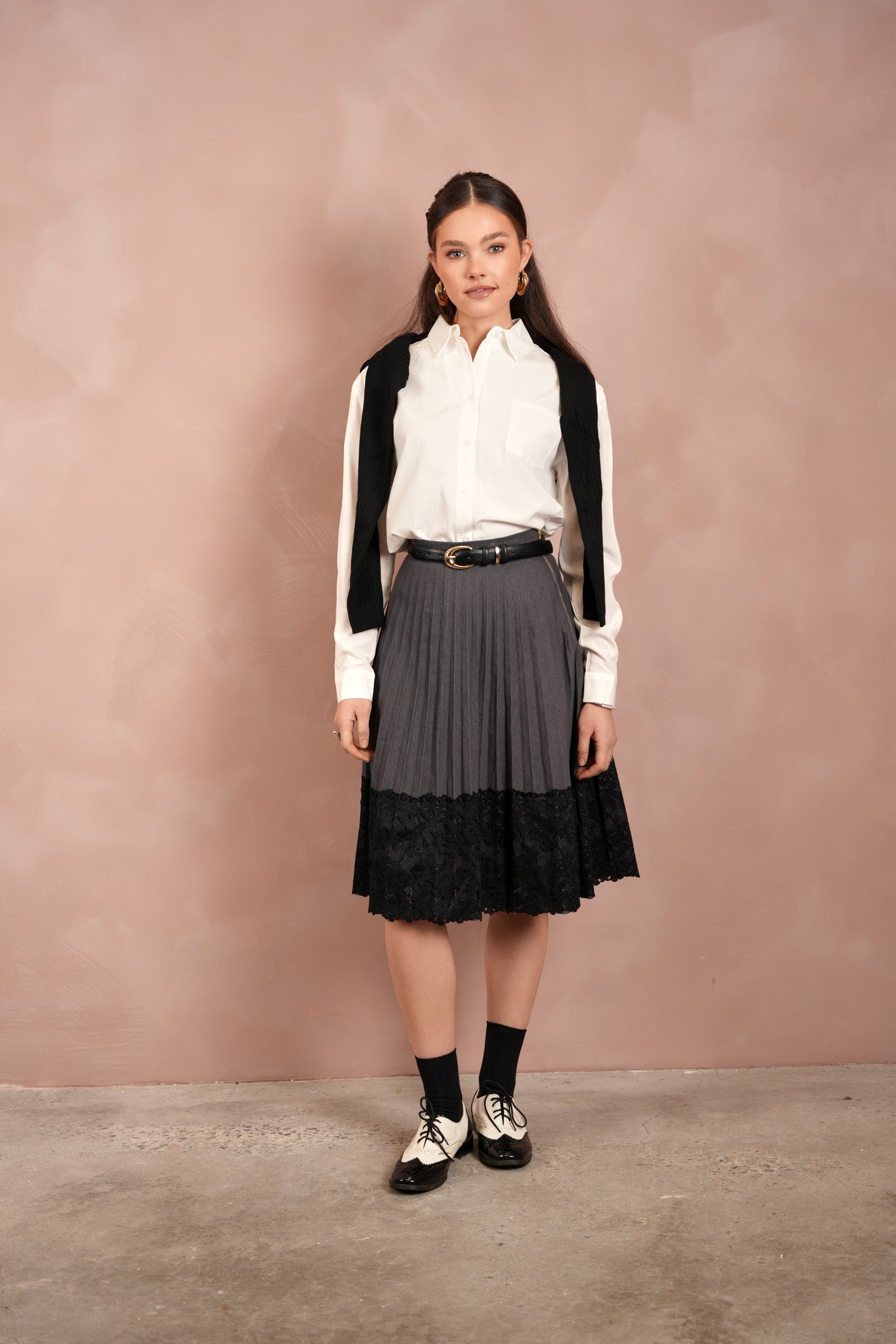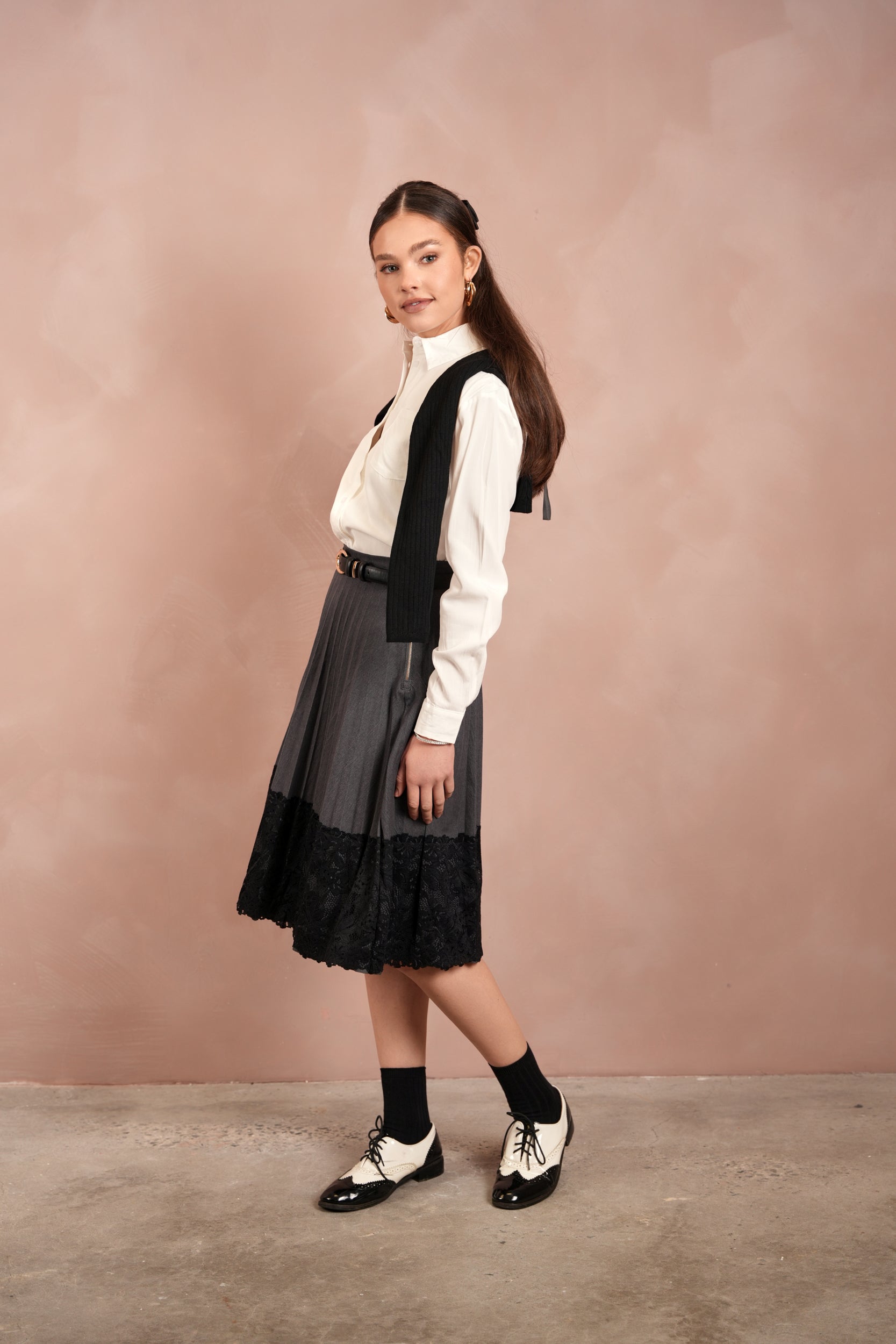 Lace Pleated Denim Skirt