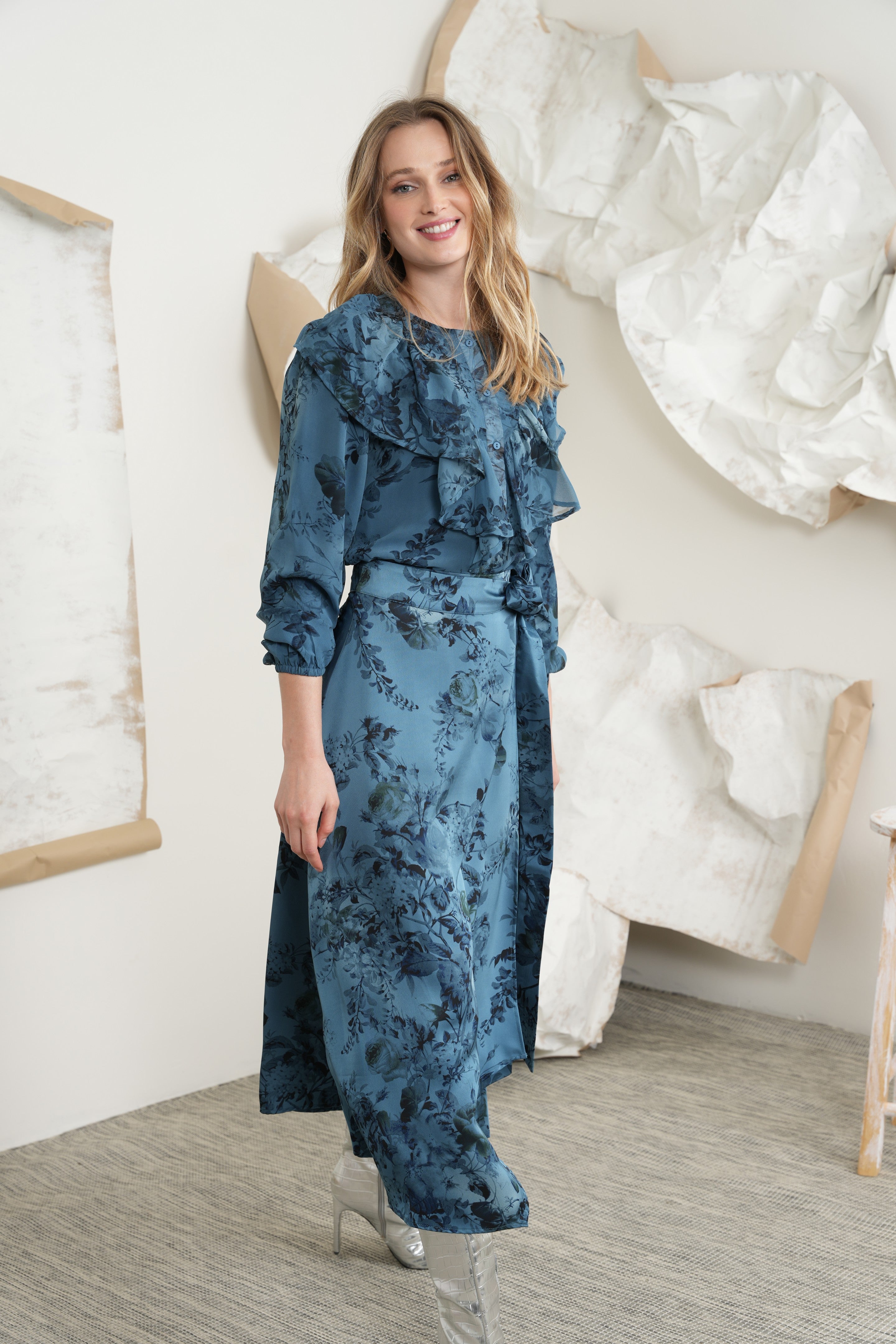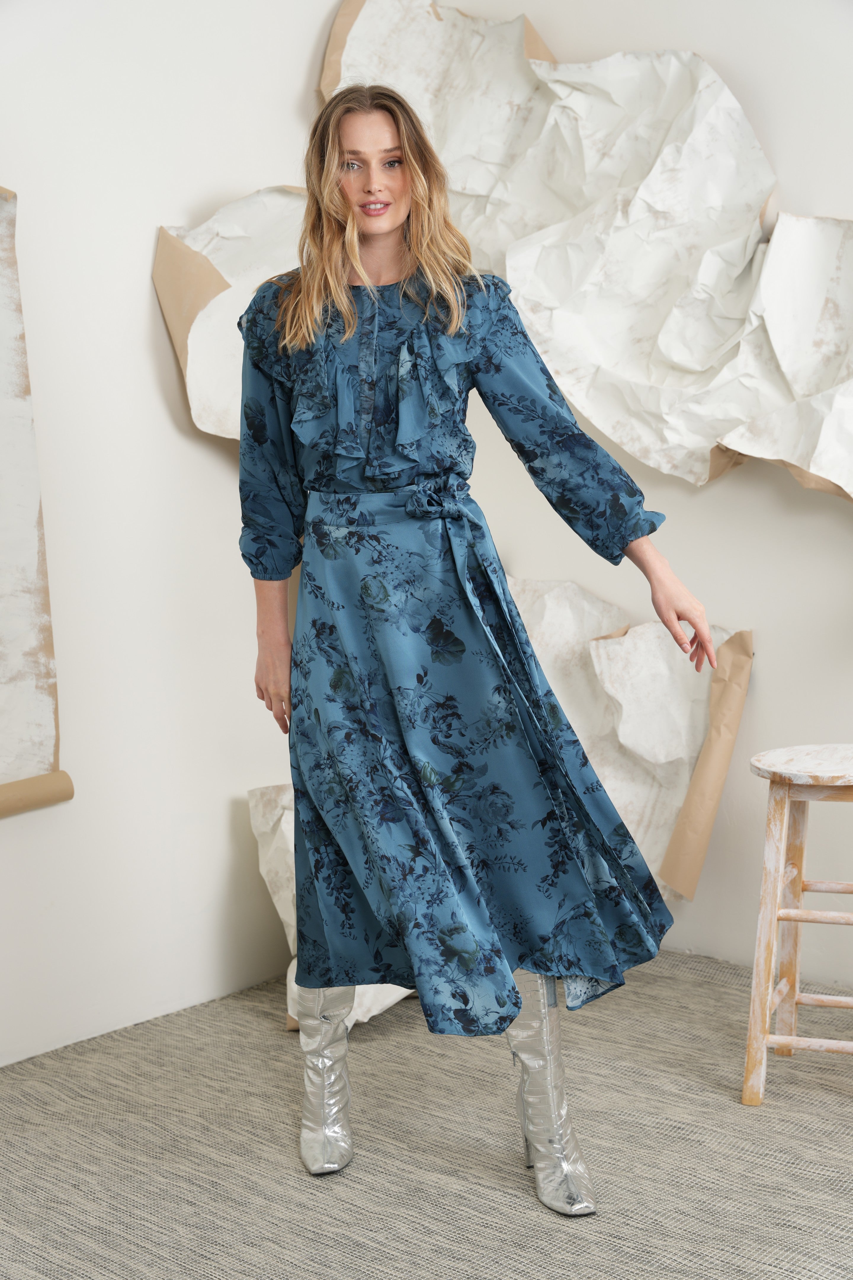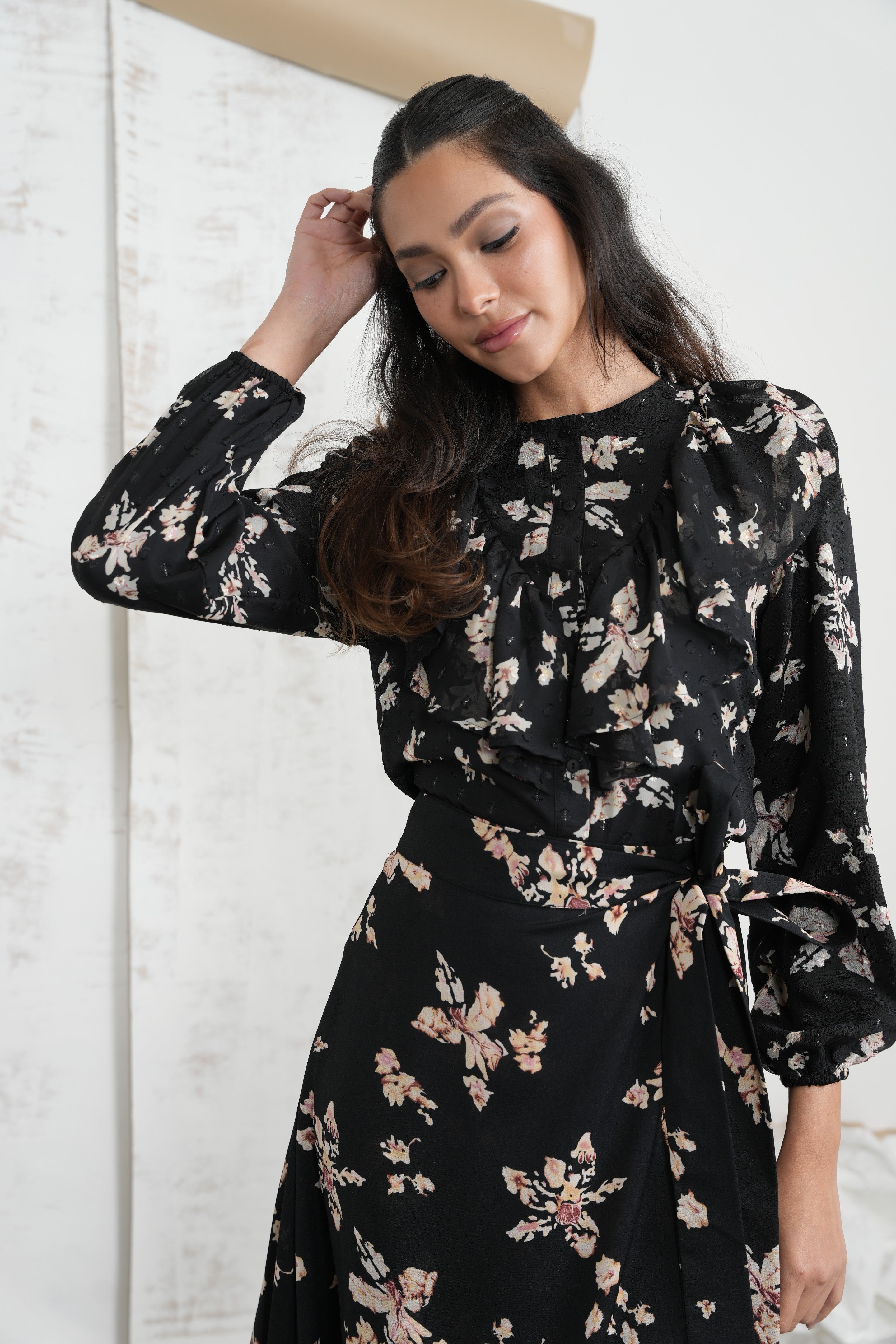 - Match to Print mock wrap skirt