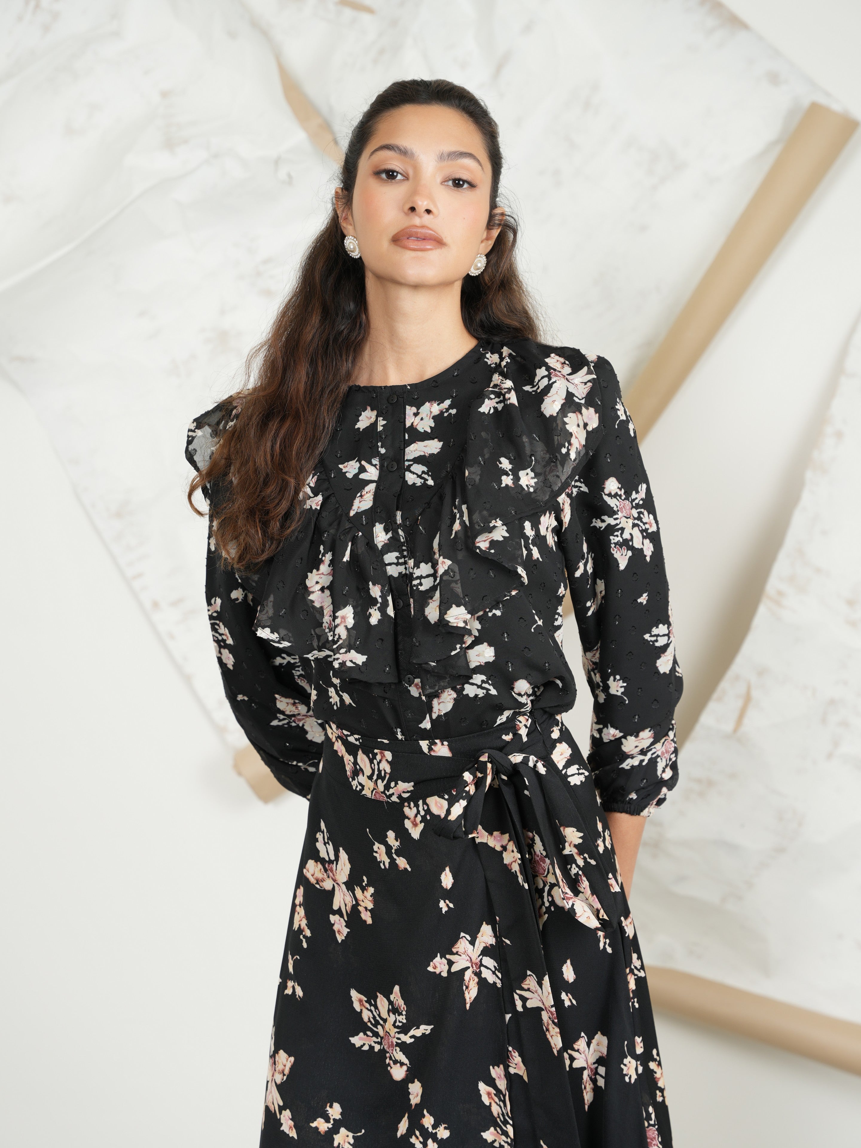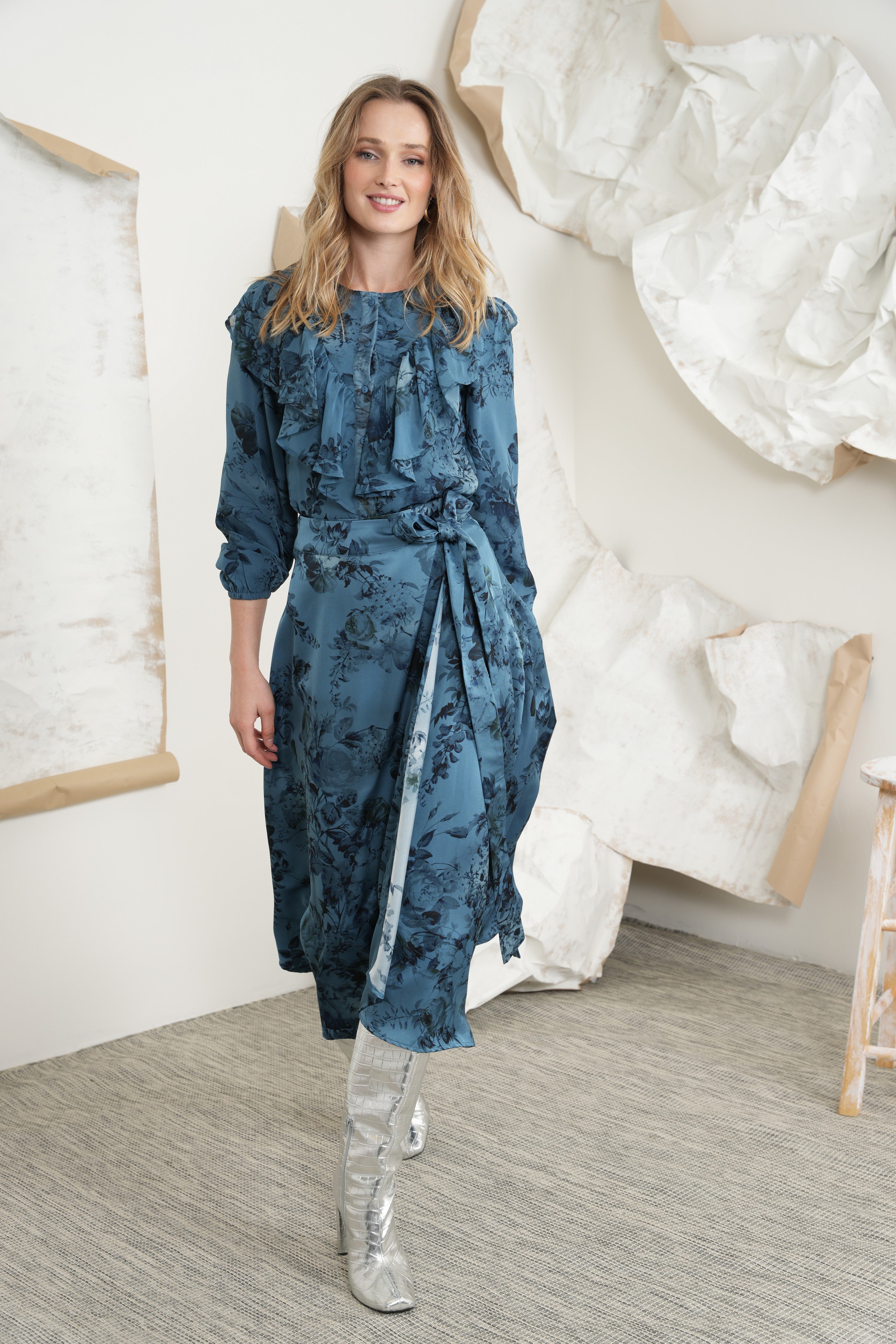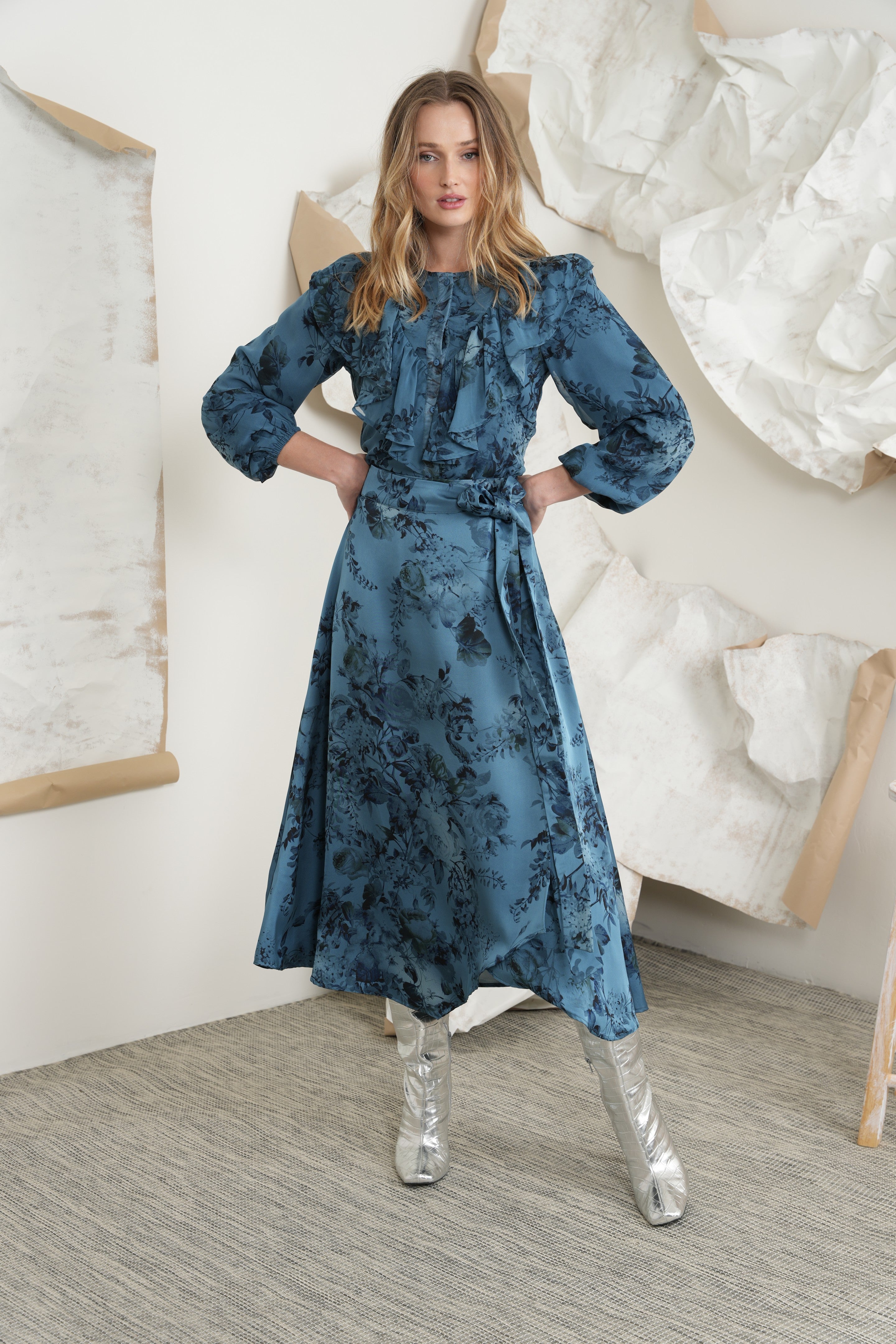 - Match to Print mock wrap skirt