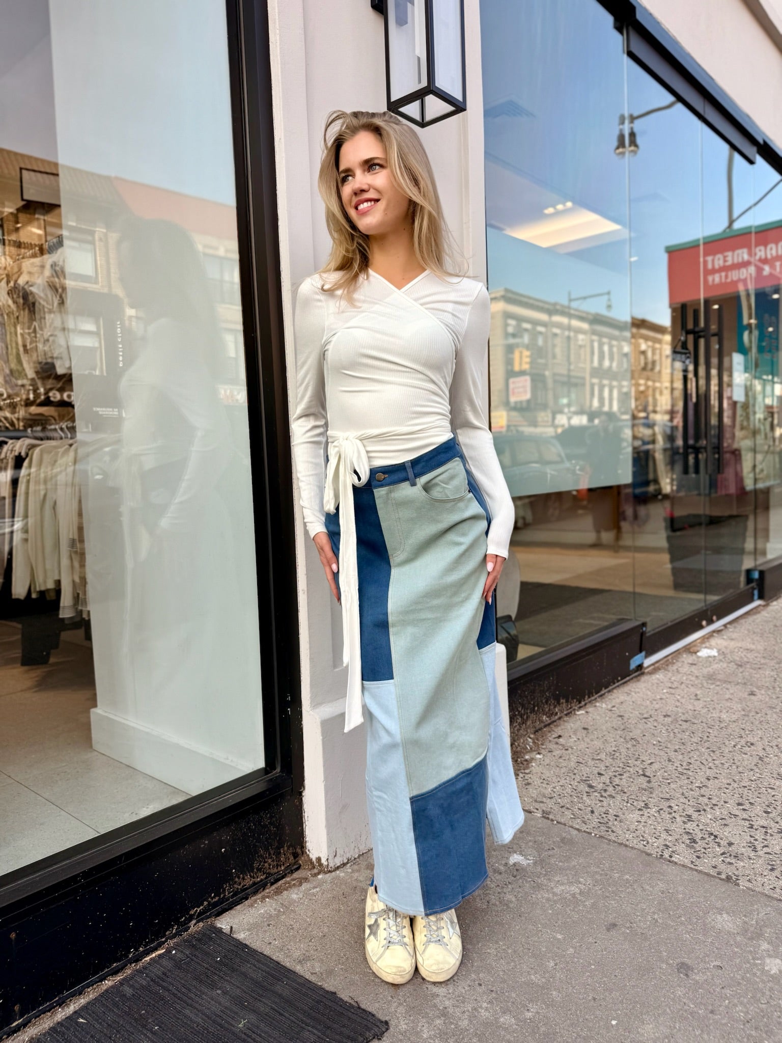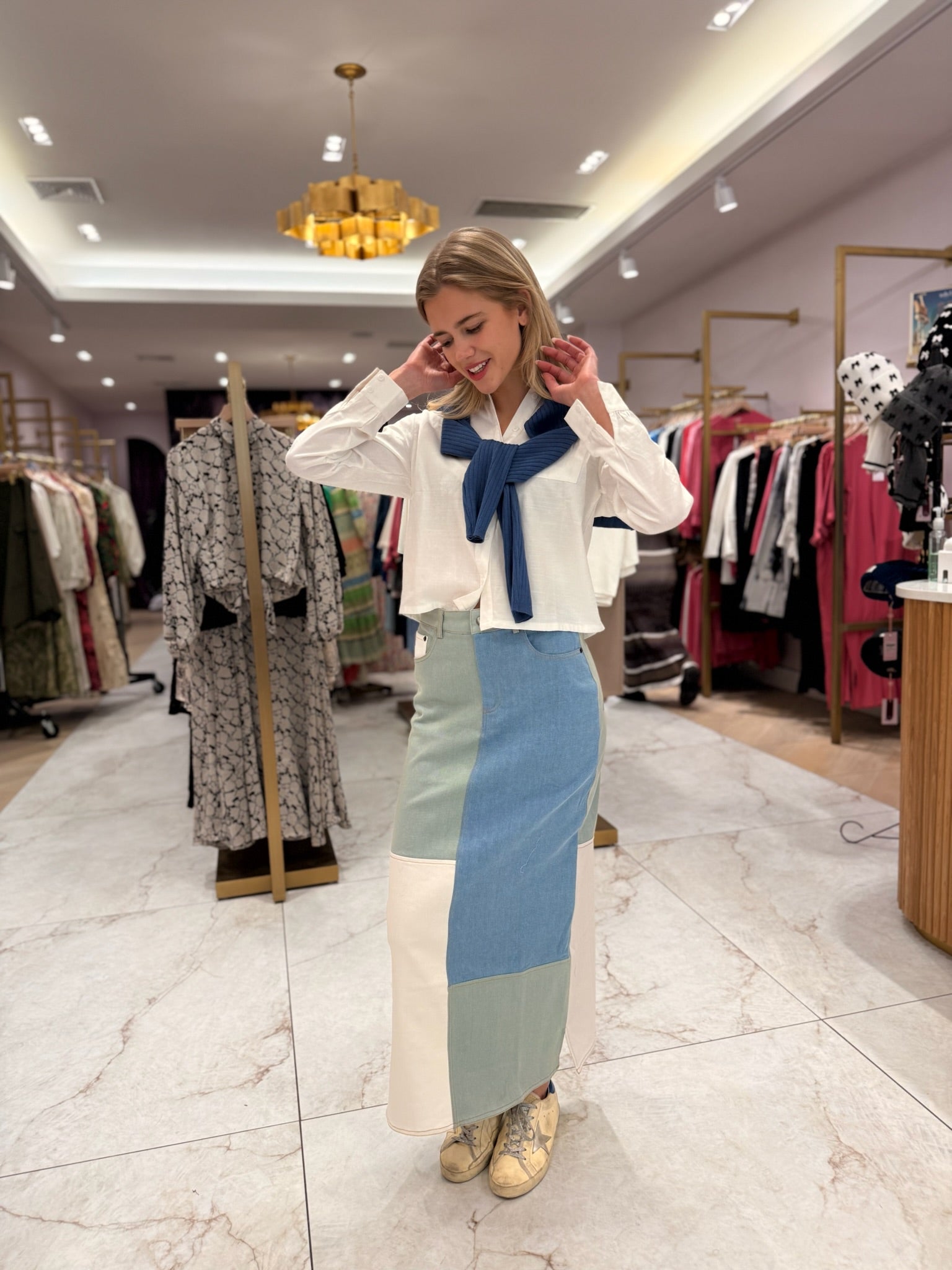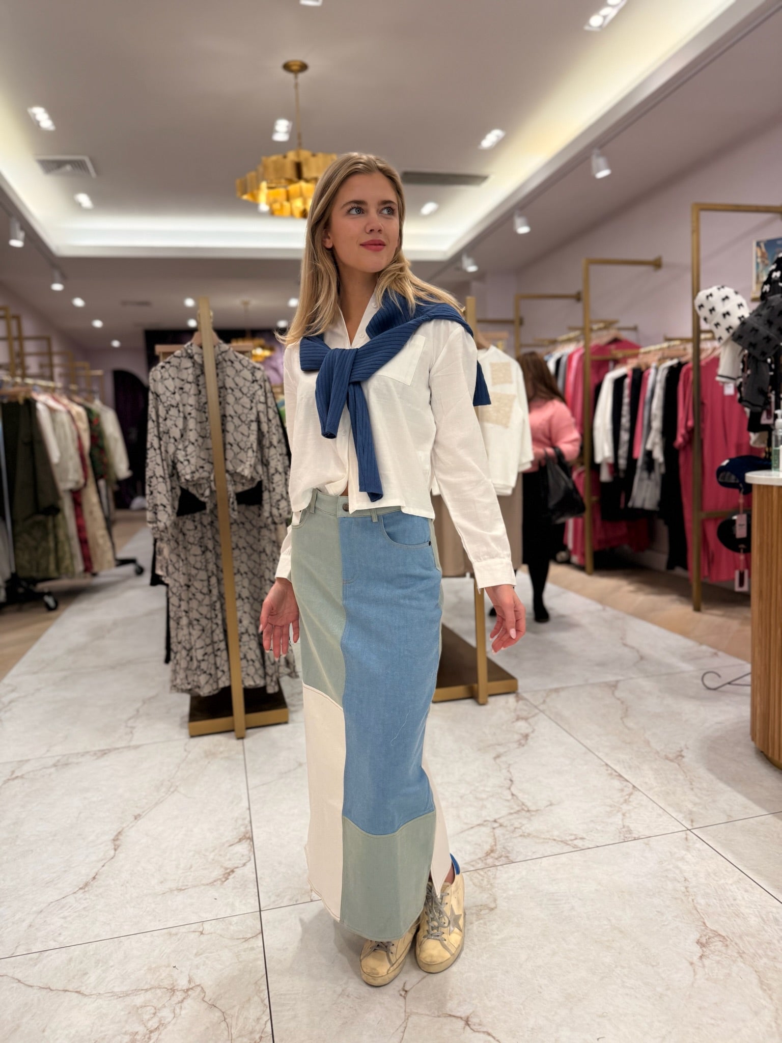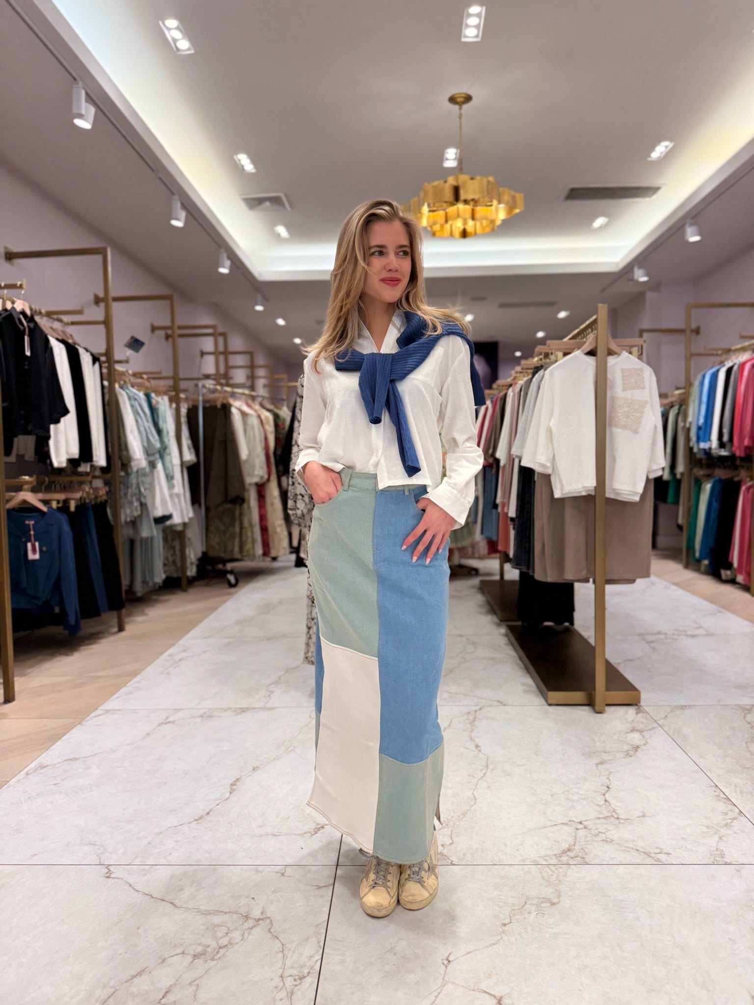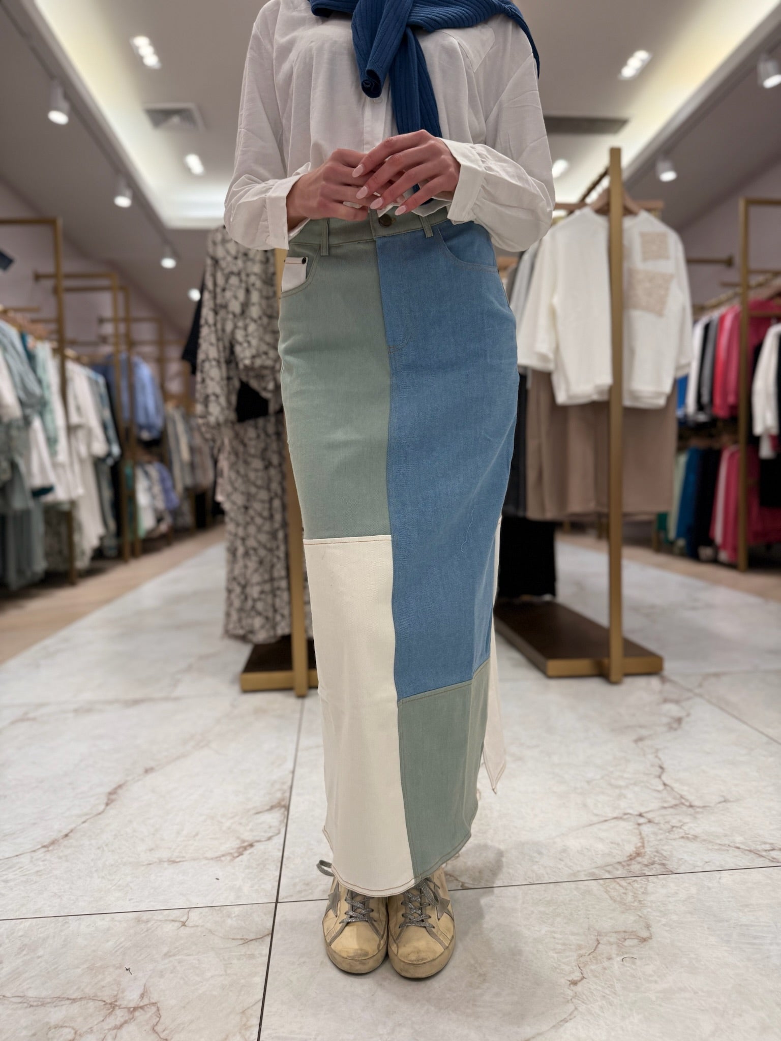 Colorblock Denim Skirt